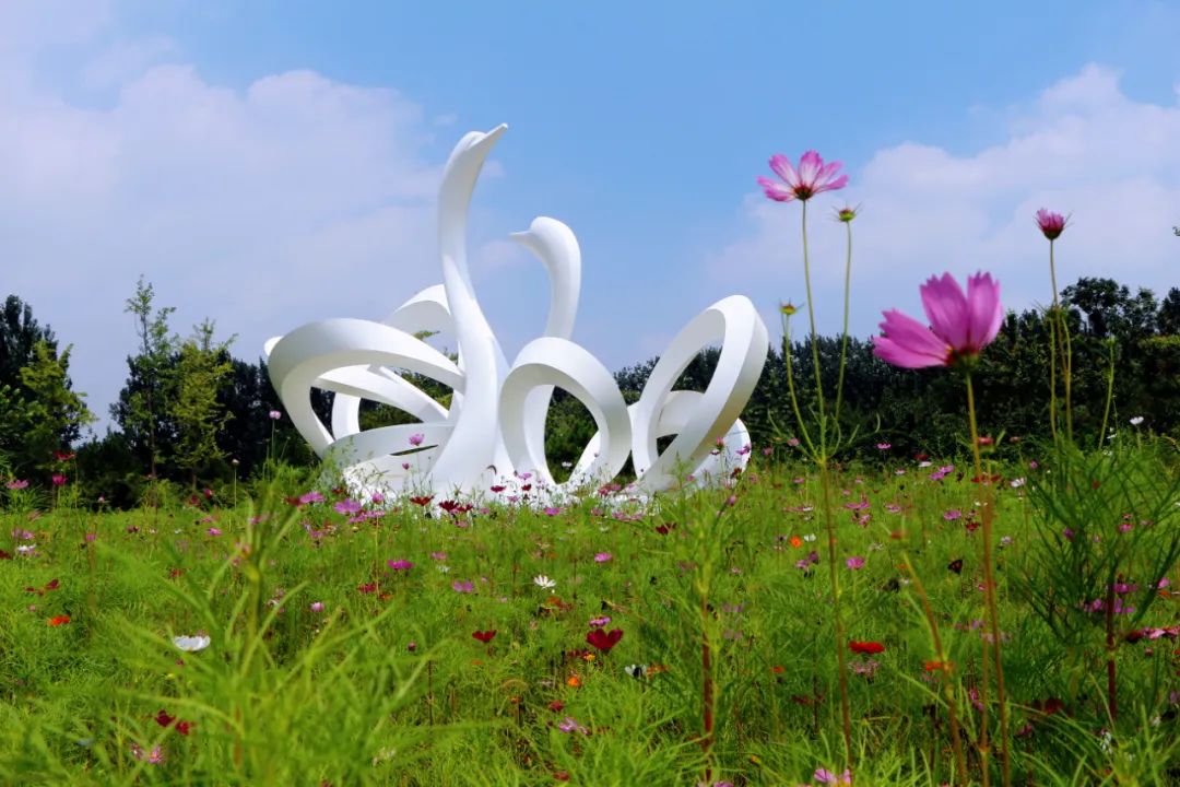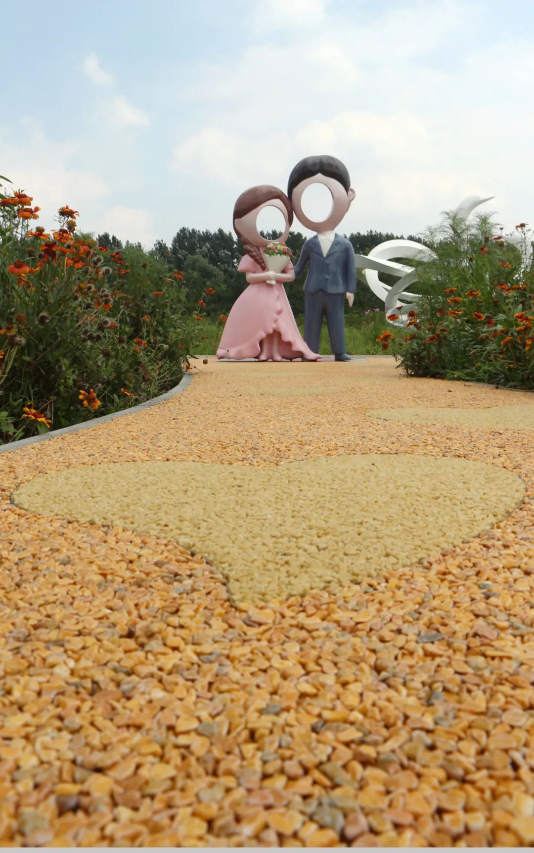 要說副中心公園裡最浪漫的地方,當屬東郊濕地公園的情人碼頭!情人碼頭由石砌而成,木板鋪地,三面環水,夏秋時節,周圍的花草綠植正是最旺盛時候,樹蔭下是青蔥綠茵,在青草與花朵的環抱中,有兩隻巨大的玻璃鋼天鵝,昂首對望,似是牛郎織女,含情脈脈,充滿著無限愛意。一旁的情侶卡通人偶更是必來打卡地,不知副中心有多少相愛的情侶在這裡留下珍貴的合影,這也將他們甜蜜的瞬間永遠記錄在了這一浪漫的時刻。