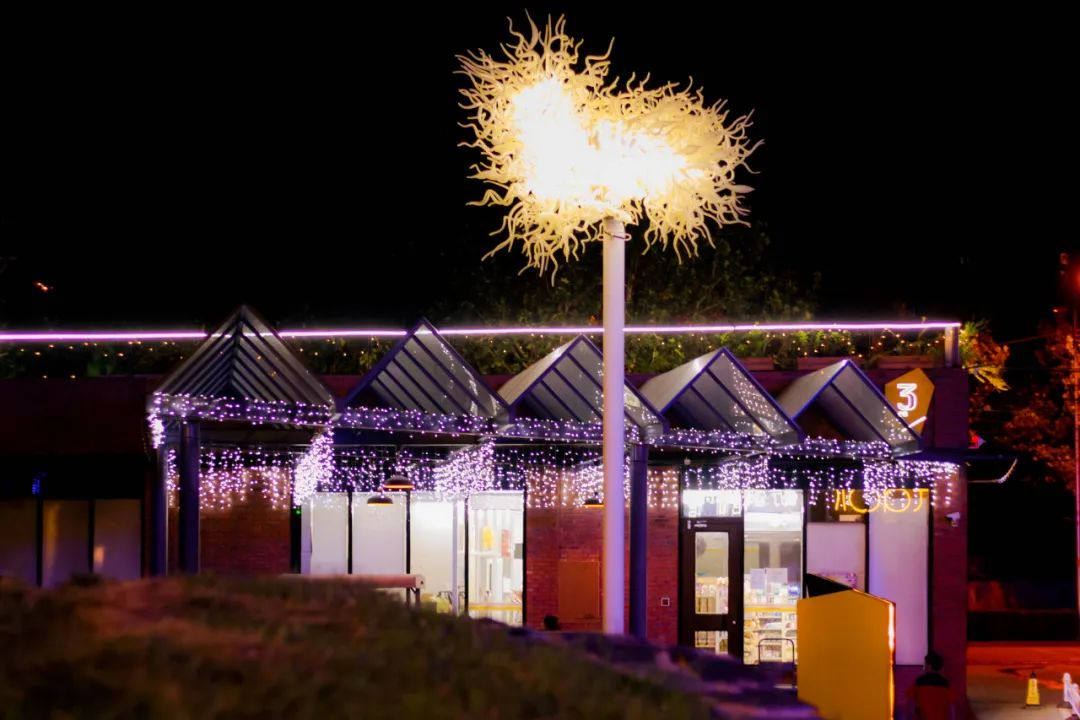 夜晚的東郎文創(通州)產業園,燈火通明,霓虹閃爍,到處都散發著青春和活力,如今這裡可是副中心有名的不夜城,無數的帥男靚女匯聚於此,共享青春時刻,也成為了情侶們最喜愛的約會聖地。如果您兩位是頂級吃貨,園區內有精品日式料理、精緻西餐等各種不一樣的美食供您選擇;如果您兩位是文藝青年,園區內也有一家24小時開放的閱青山書屋,讓您在書本中尋找詩人蘇軾所說的「春宵一刻值千金」。