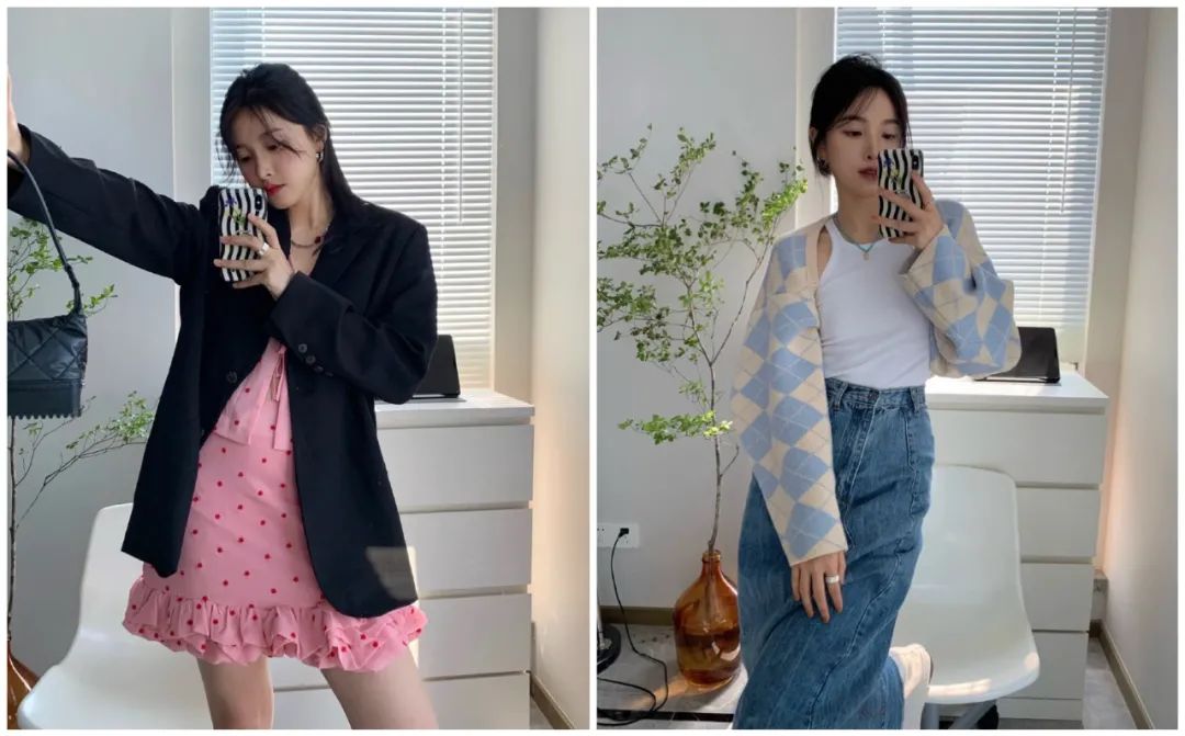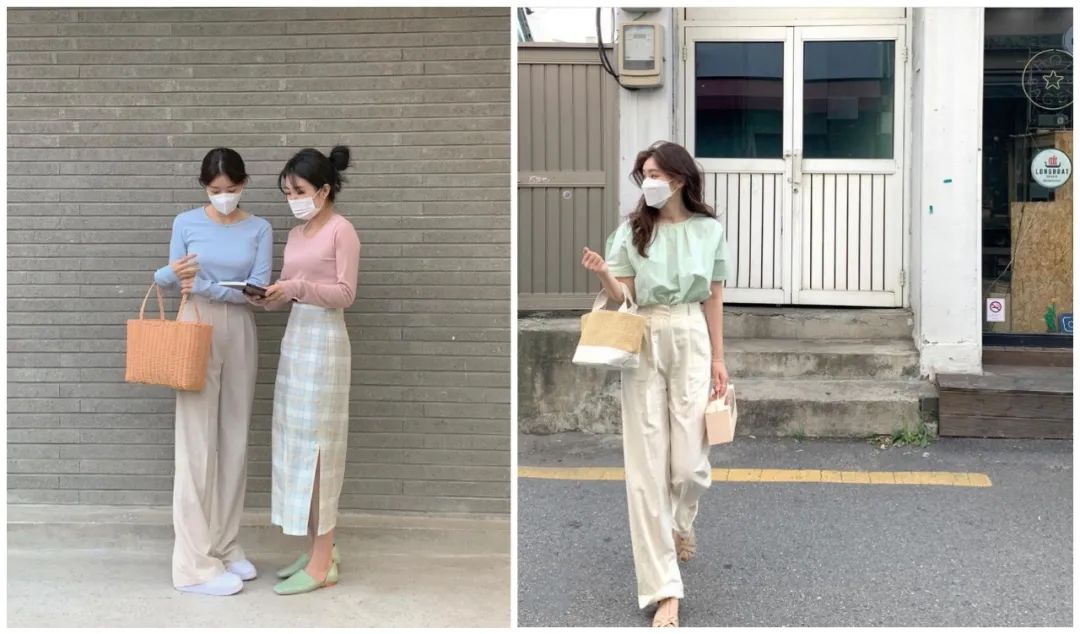 這種風格大多純色、低飽和度色系較多,都很顯白顯溫柔,黑黃皮穿上也不會翻車;