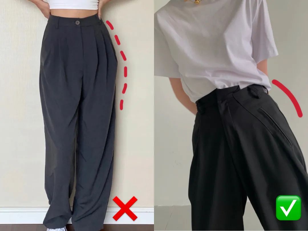 ②西裝褲要選面料重一些,腰部設計褶皺不要過多的款式,容易顯胯寬。