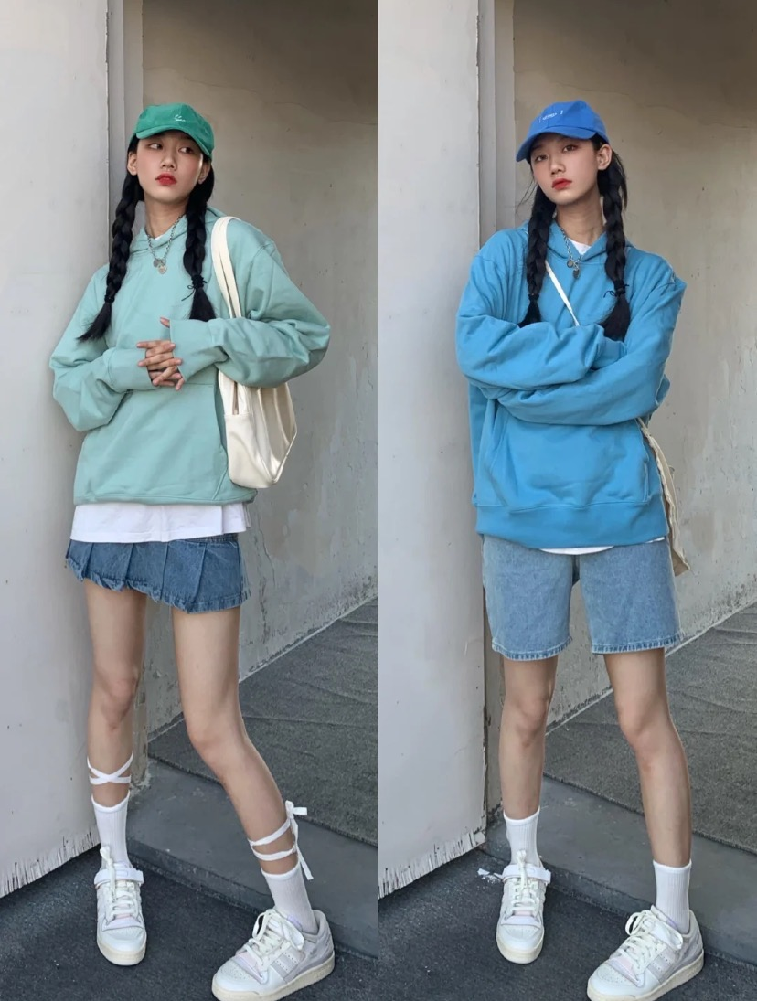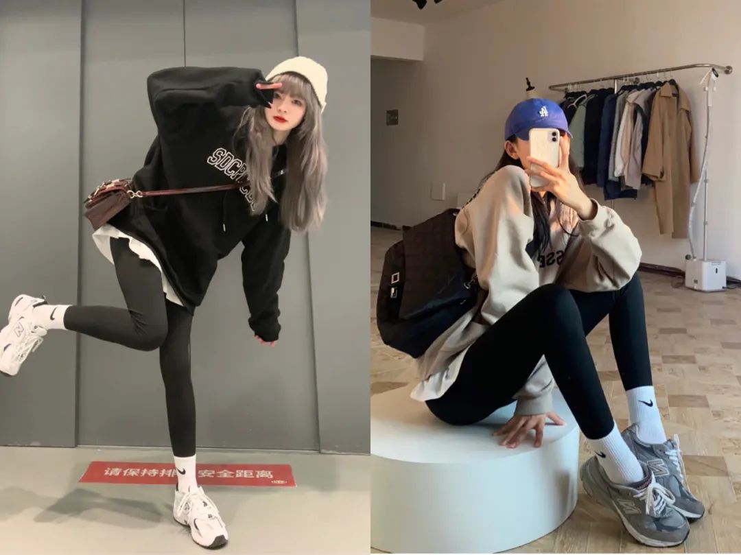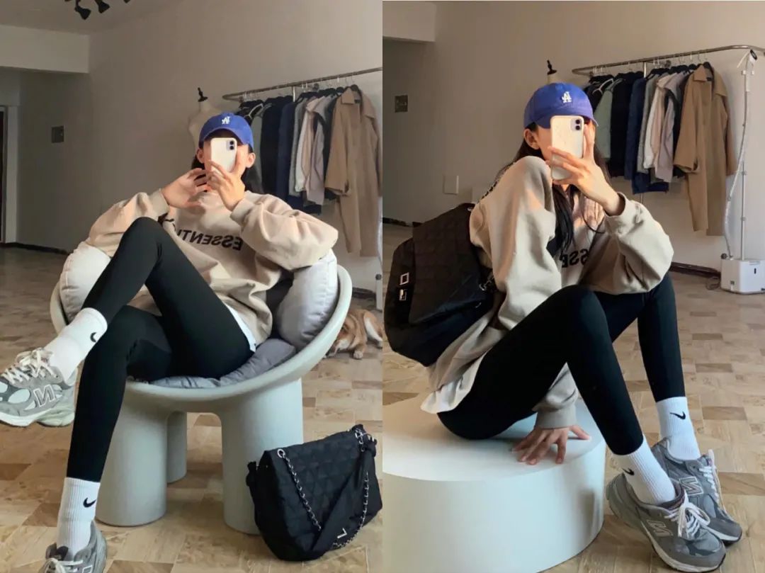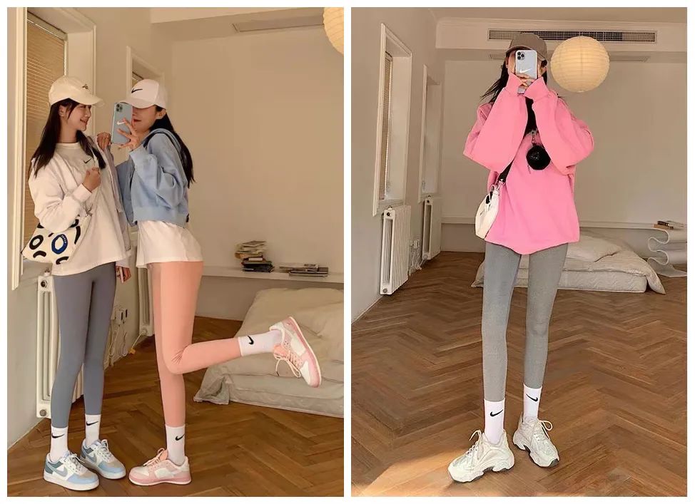 要問今年最火的韓系穿法,那鯊魚褲+小腿襪+運動鞋絕對能擁有姓名。