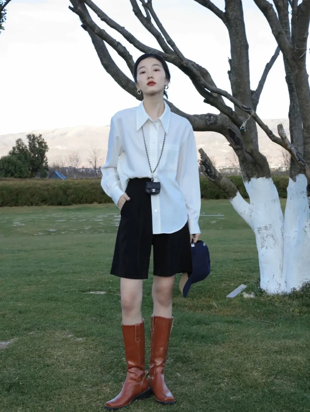 鯊魚褲的瘦腿能力不用我再贅述了吧,這組萬能下裝cp,超級顯腿直;