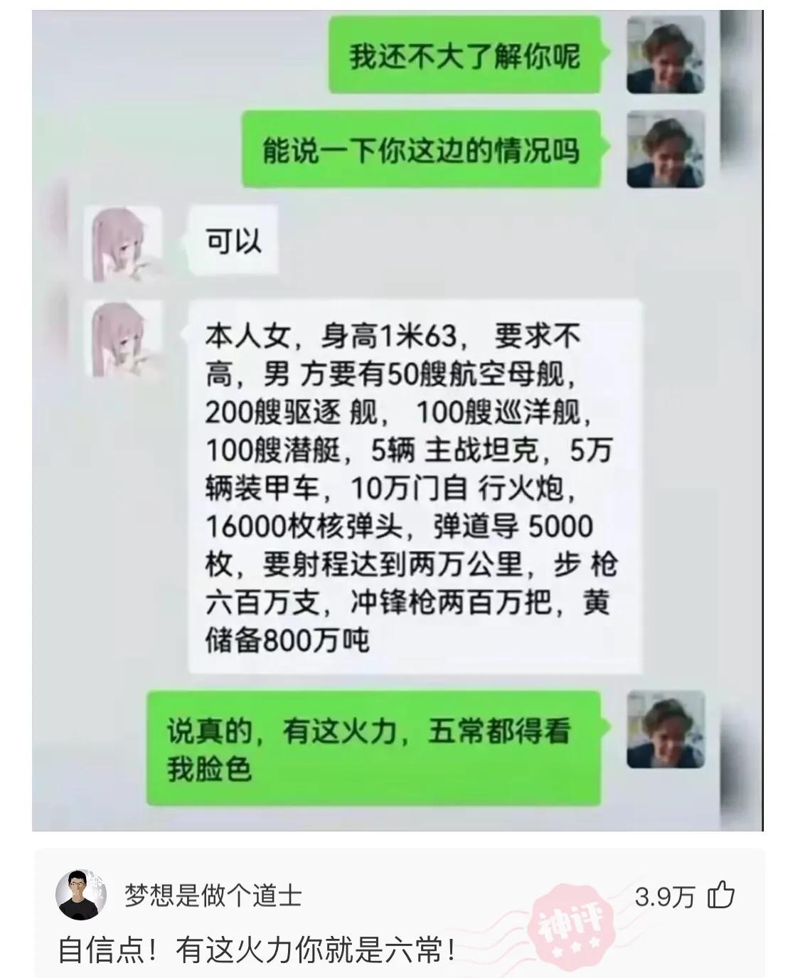 爆笑神評論:我去相親,想問一下大家,女方這個要求過分嘛?