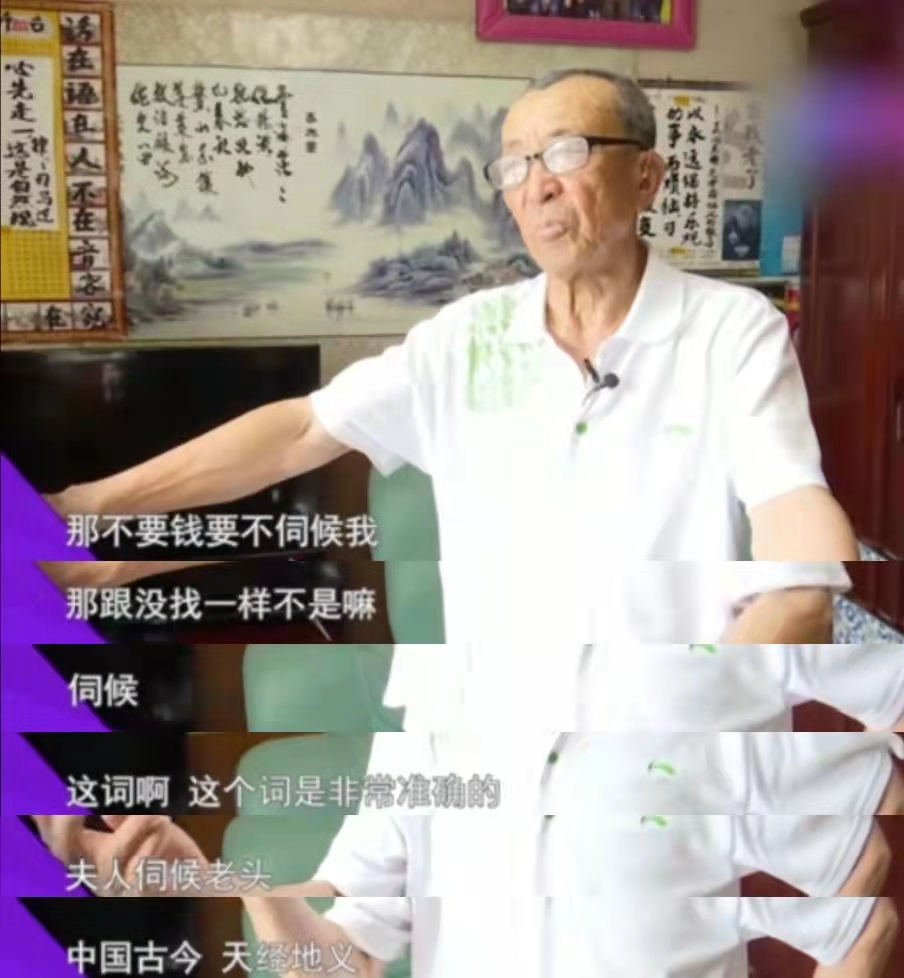 旁邊的人糾正他,說那是老伴在照顧他,不是伺候。