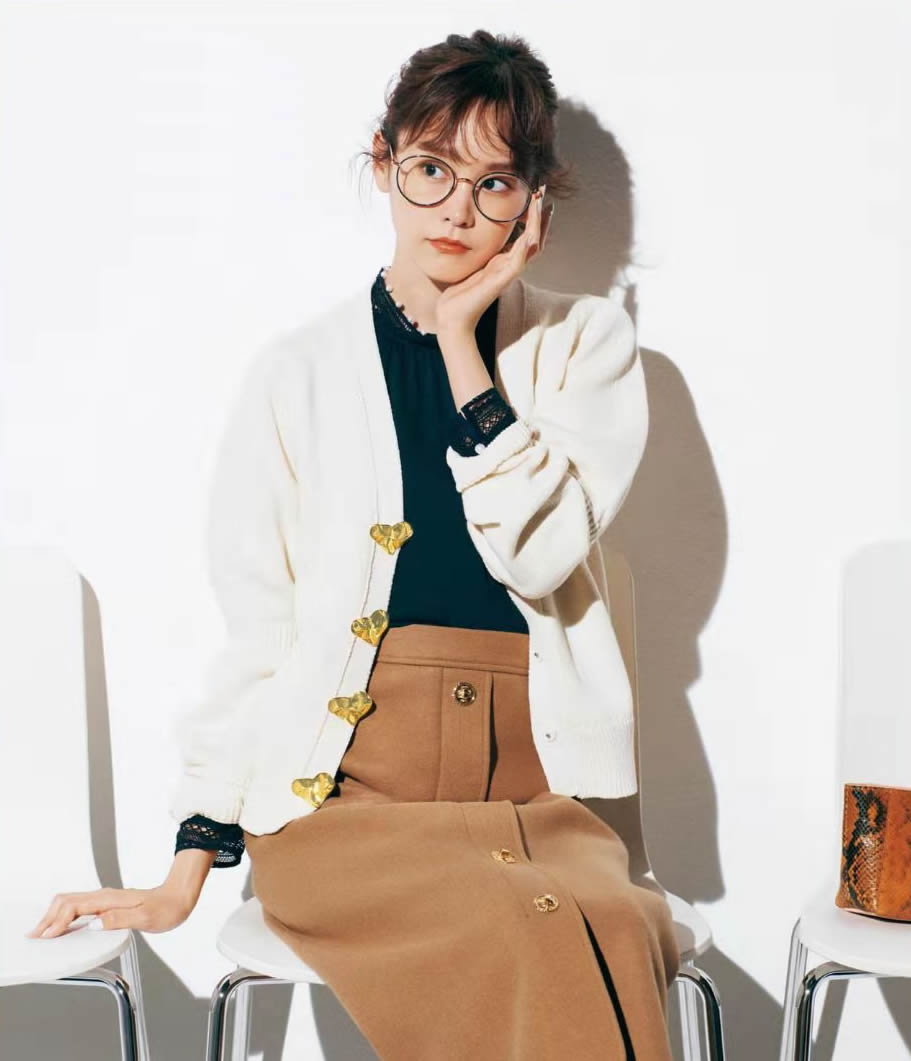 秋冬的米棕色一出場,誰敢說你不時髦優雅?白色毛衣開衫,巧妙用米色個性紐扣聯結起整體配色。黑白卡其,簡單卻美麗著。