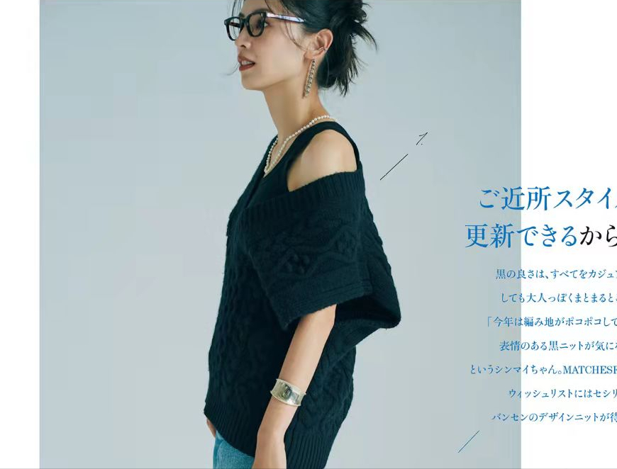 很討巧的小面積露肩,有效修飾寬厚的肩膀,再點綴一條珍珠項鏈,時髦還不失優雅。