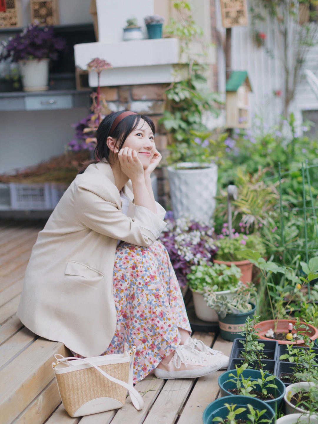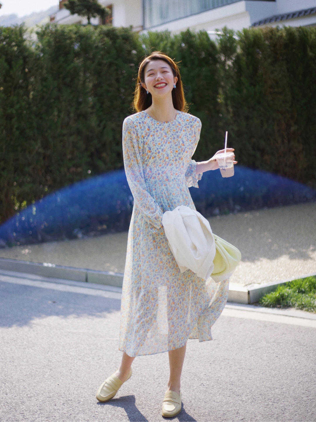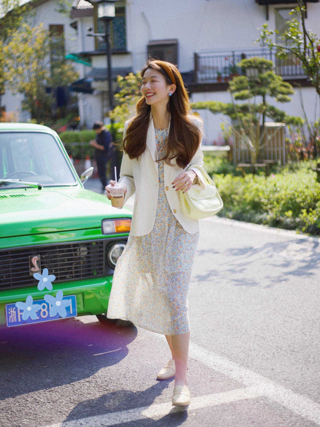 就像這位時尚博主一樣,選擇一款碎花裙,而且還是收腰設計,就能看到很多腰部比較瘦,然後就覺得身材比較高挑,搭配的T恤就會顯得非常不錯,而且T恤也是很好選擇的,一款白色的就可以,再搭配一件大家比較喜歡的西服外套,這三個款式大家應該都可以穿搭好幾年了,這幾個款式絕對不會過時,至少近幾年不會。
