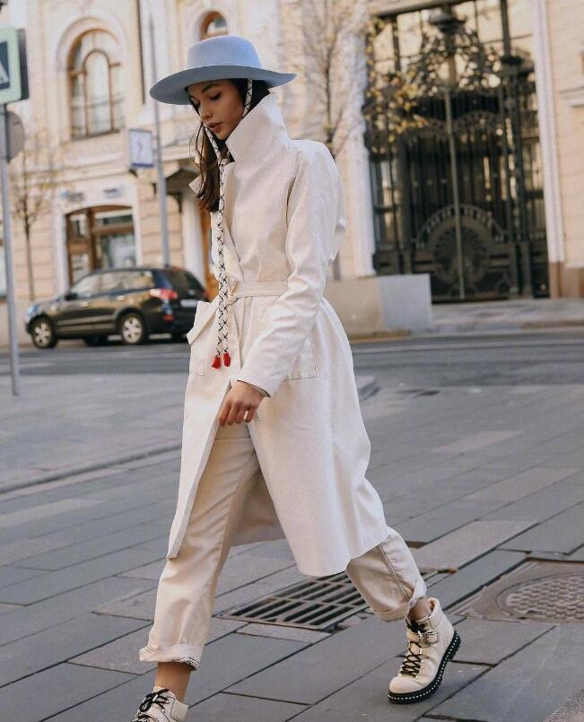白色長款大衣穿出來很吸睛,顏色也很顯乾淨,我們可以搭配白色褲子,再搭配一雙白色馬丁靴,既顯高挑,又很A。