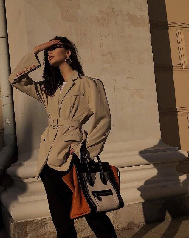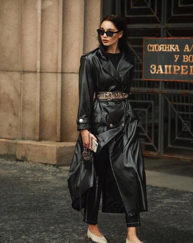 黑色褲子是一款可以從秋天穿到春天的褲子,各種百搭,搭配一件基礎的白色針織衫,再搭配一件卡其色西裝風衣外套,時尚又帥氣。