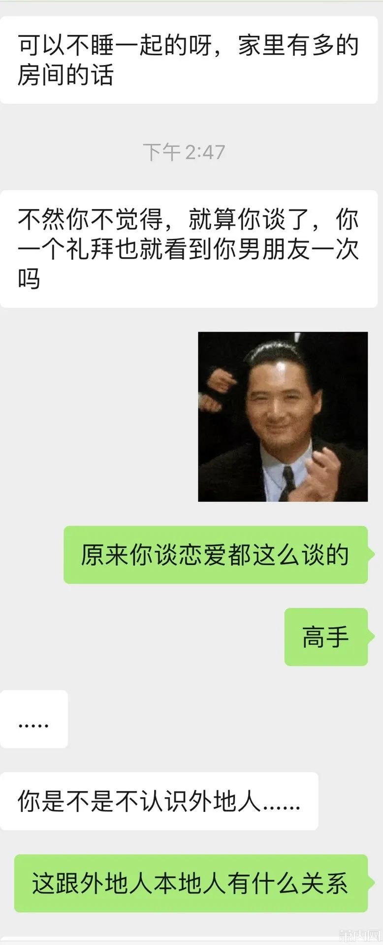 網友@Lucky:誰說外地人談戀愛就住別人家的?我談戀愛照樣自己租房子住自己家,扯什麼地區,誰差那點房租!