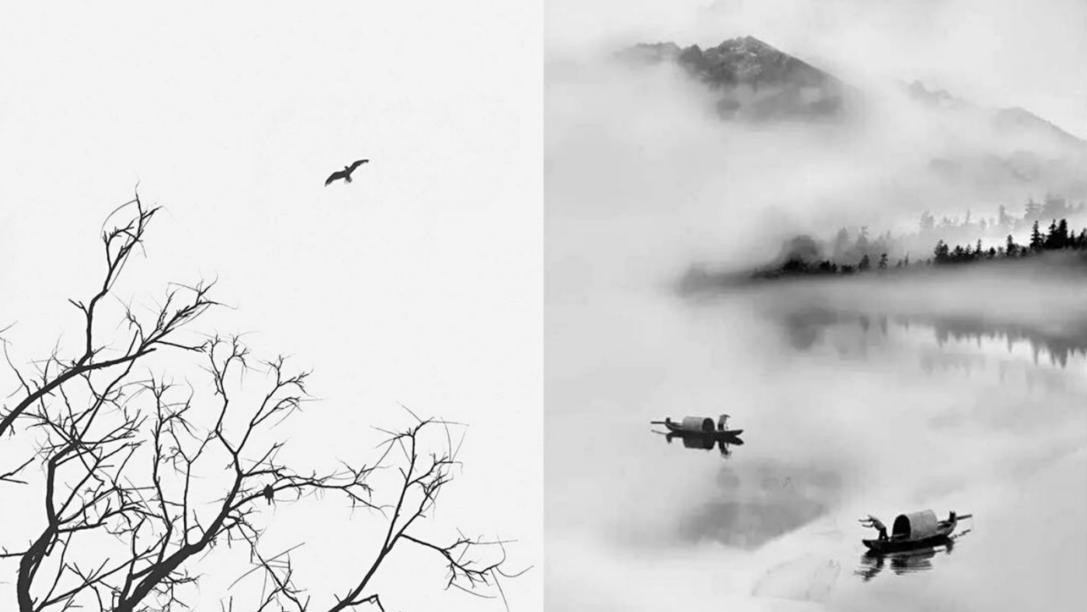 大陸古典美學中,一直都對留白情有獨鐘。真正能引起人共識的,是風清雲淡的朦朧感,是有所保留的含蓄美。北雁南飛,滿篇的空白,沒有任何天空的描繪,我們卻能讀懂畫中所描繪的自由廣闊的世界;小舟泛湖,兩個漁翁,雲煙縹緲的仙氣世界,同樣運用了大量的留白,營造四面疏通,煙沙浩渺,雲霧繚繞的清冷意蘊之美。