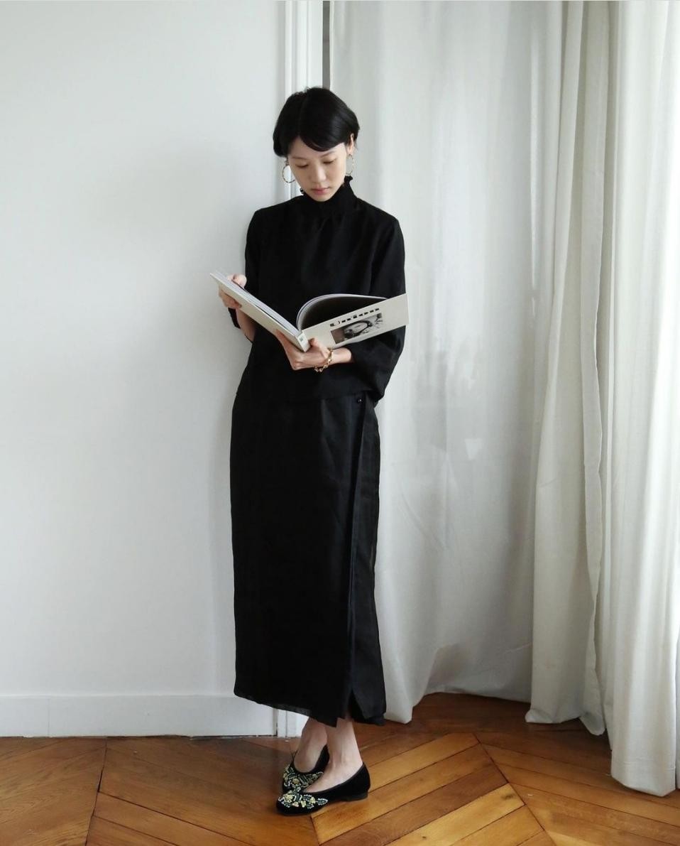 一身黑色喜歡嗎?玄黑,乃萬事萬物的生長本源。再奔騰的風格,再狂妄的姿態,都會在水墨畫的點滴間漸漸隱去鋒芒。黑色應當是古典美學中,最讓人意猶未盡的顏色。一件黑色的高領上衣+黑色及踝的直筒半裙,大氣優雅的配色與合身利落的剪裁、共譜一曲令人蕩氣回腸的禪宗素雅之美。深沉的配色與孤傲冷艷的穿著者氣質完美配合,加任何一點點裝飾,都會覺得失了分寸。試問這樣的雋永優雅留白美感,不比花裡胡哨的穿搭高級多了?