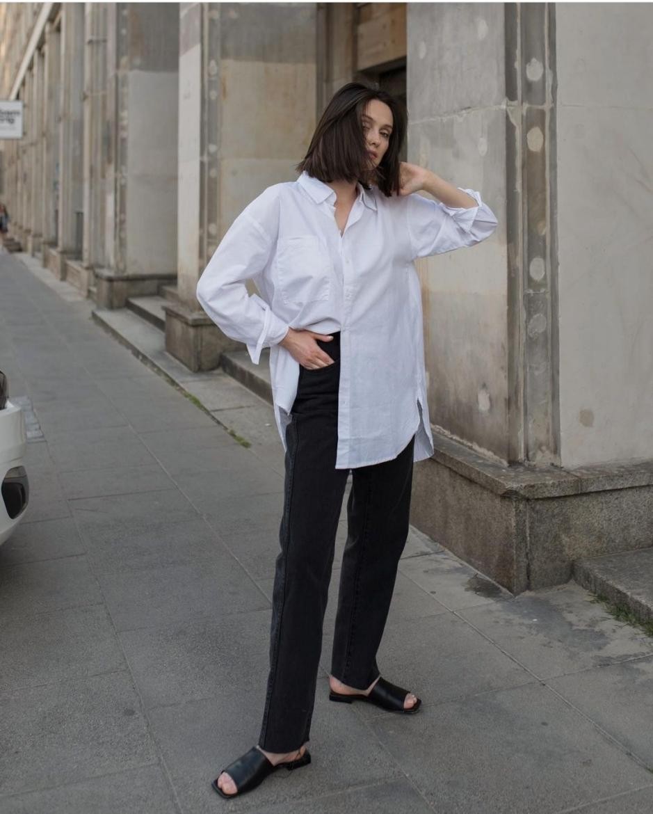 現在的時尚圈越來越推崇留白式穿衣,身上沒有丁點的裝飾性元素,將全部的心思都用在了流暢順滑的服裝版型上,讓人忍不住的琢磨這其中的奧秘。一件挺闊的白色襯衫,剪裁渾然天成,線條流暢自然,寬鬆有骨的白色襯衫,帶著濃鬱的都市大氣情調撲面而來,令人印象深刻。就是這樣一件簡單的白色襯衫,取勝的真的不是它所謂的設計感,而是低調考究的版型和質感。下面配上一條黑色的直筒牛仔褲,上松下緊,收放有度,簡潔幹練,最大程度襯托穿著者清冷的氣質。