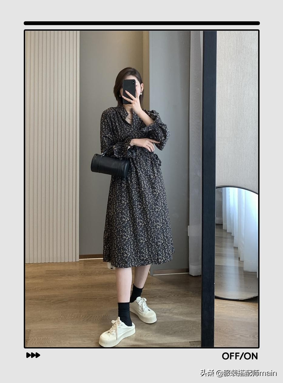 在北方出遊的話,我比較建議穿一條長袖碎花連衣裙,遠離城市的地方溫差會更大一些。長袖還能藏住手臂上的肉肉。