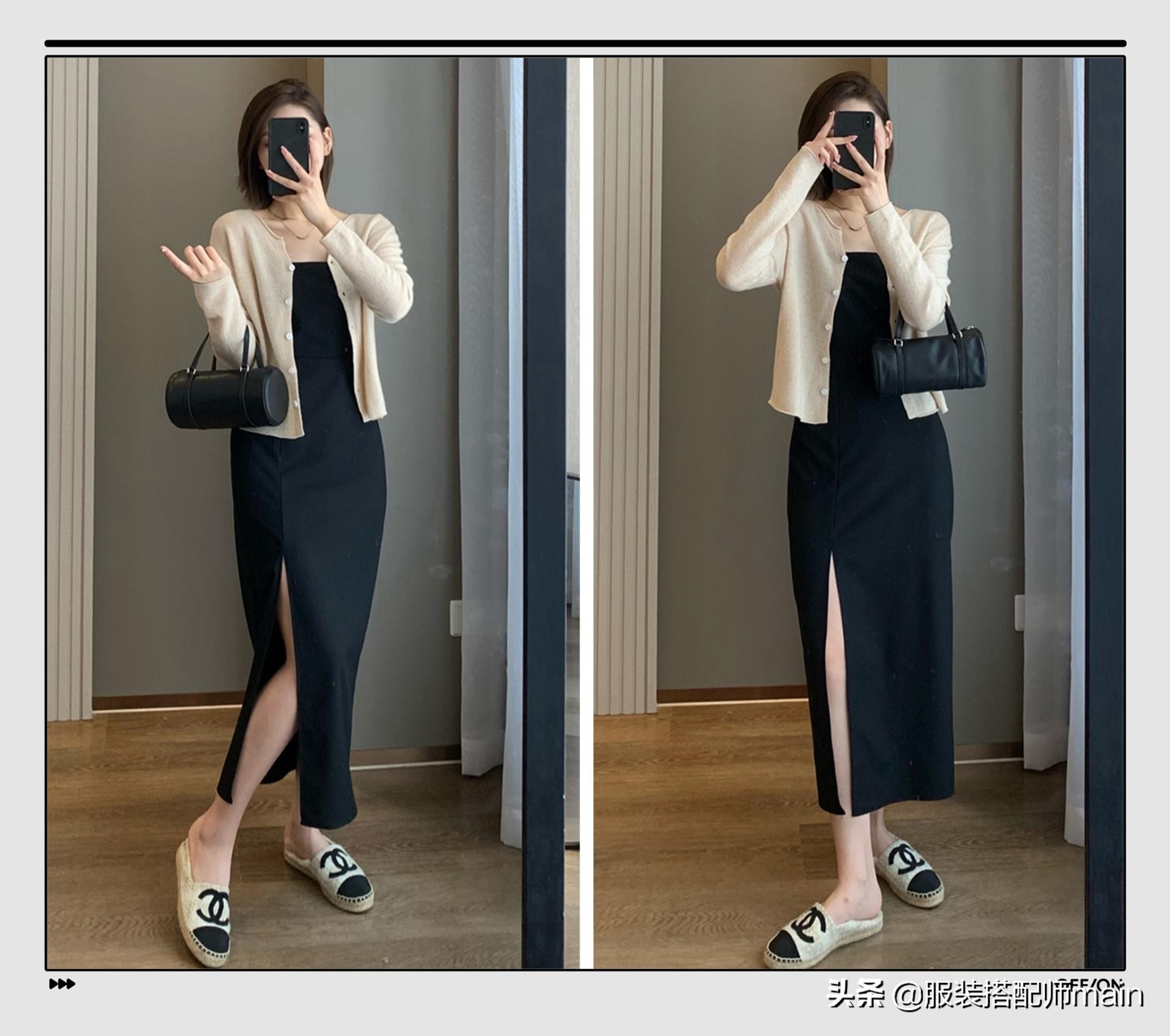 南方的小夥伴出去玩,就不用捂得這麼嚴實,吊帶裙還是要穿的,尤其是這種有開叉設計的吊帶裙。