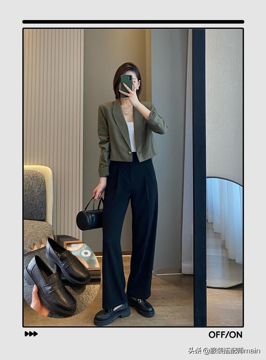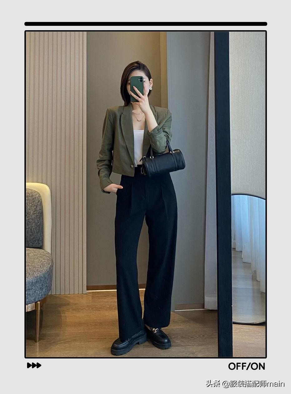 小個子女生還是應該穿這種短外套高腰褲,再利用塞內搭來優化身材比例,我感覺這造型被我穿出了「三七分」效果來了。