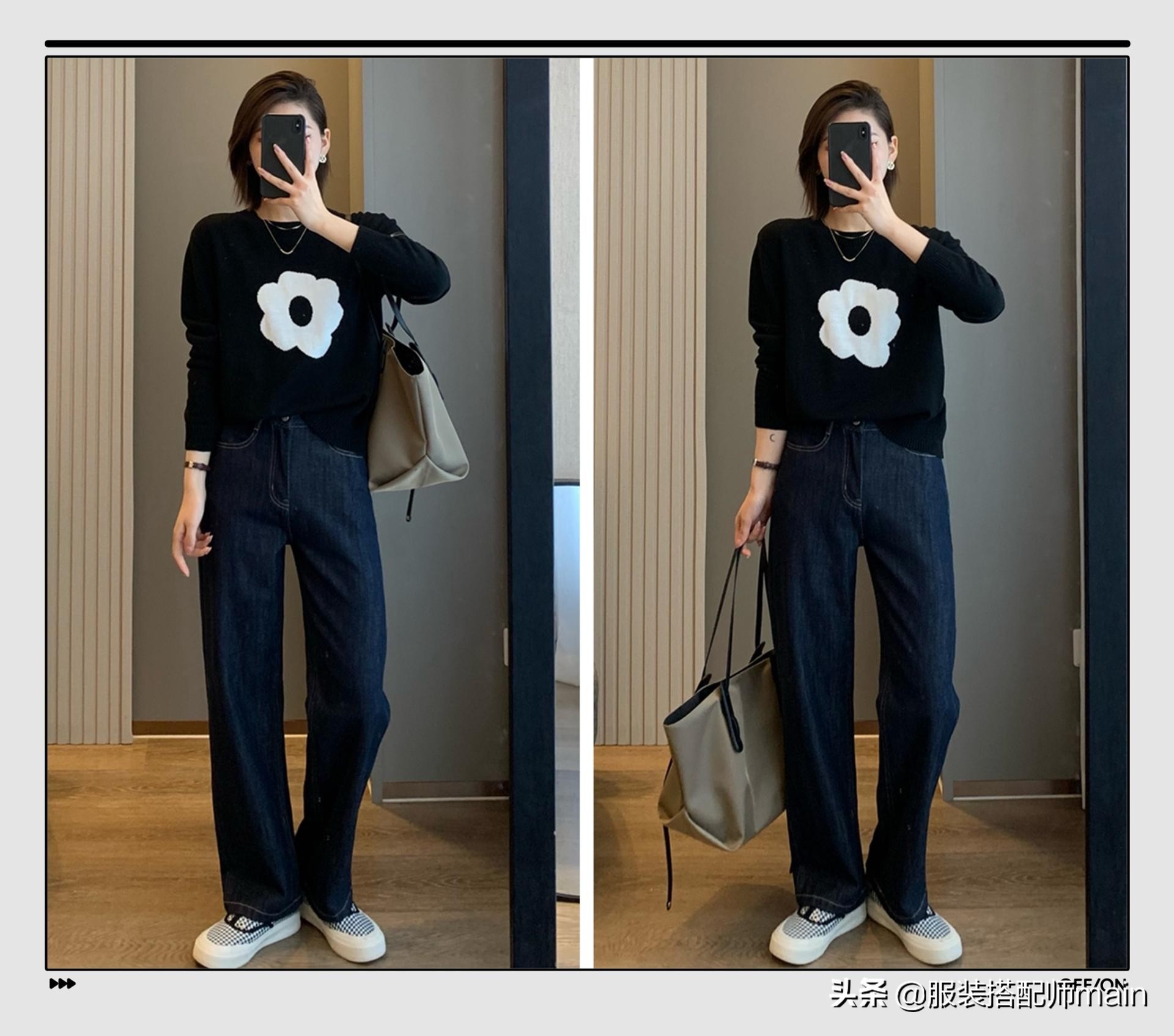 例如牛仔褲,一條高腰的直筒牛仔褲真的不挑腿型,上身搭一件針織衫或者衛衣就這樣出去逛街,我能走一天。