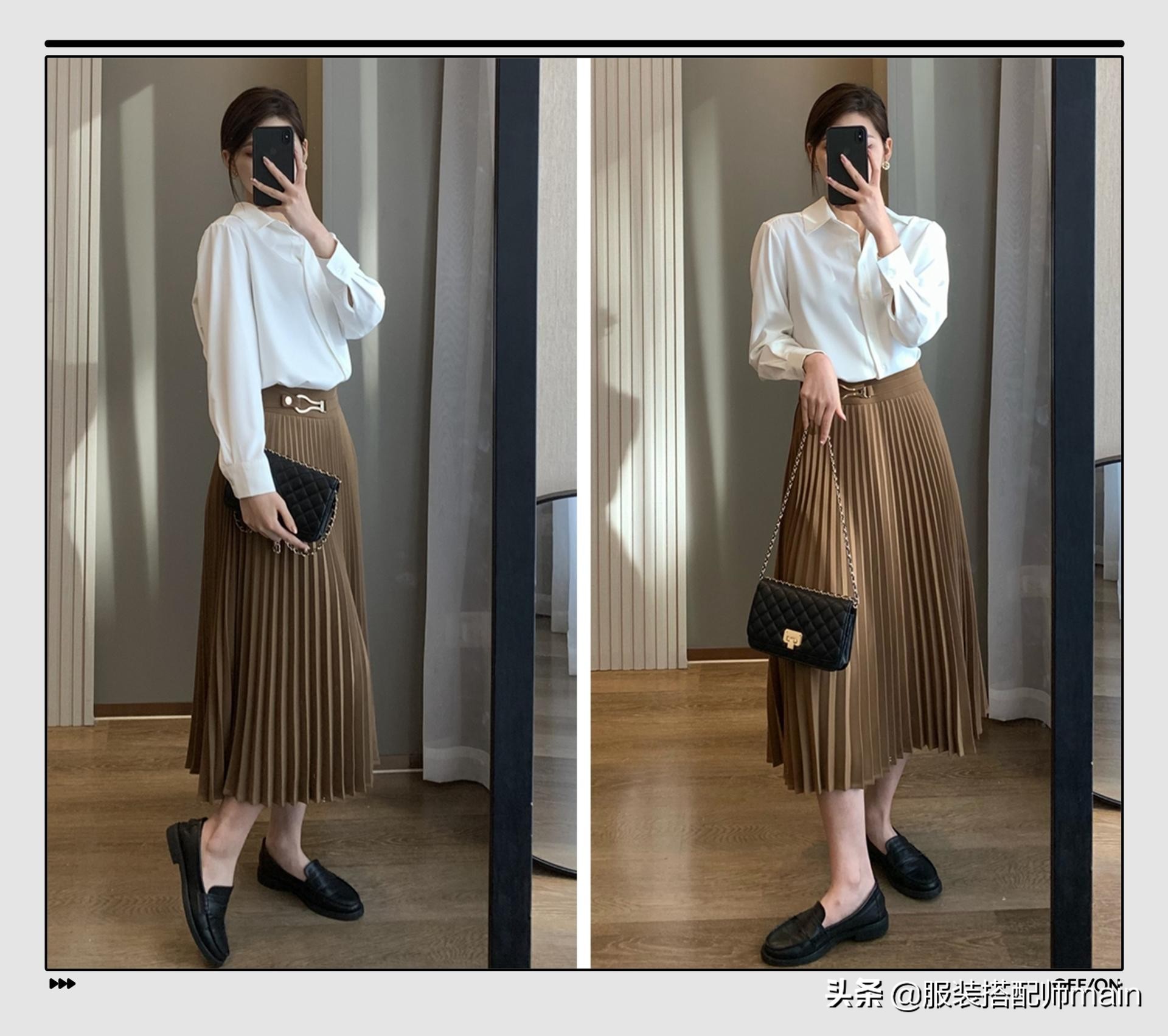 如果沒有合適的針織衫也沒關係,找一件寬鬆版型的白襯衫,搭一條百褶裙,出現在婚禮顯出也沒有什麼違和感。