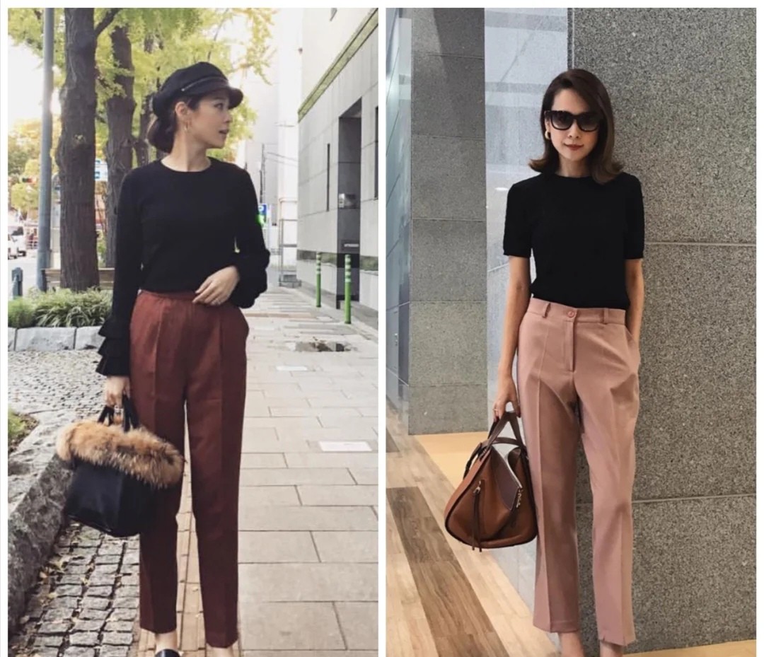 不過,黑色襯衫也會因為氣勢太強,而讓人覺得有距離感,可以在選用褲裝時,採取杏色米色等一些淺淺的柔和的色彩進行互補。
