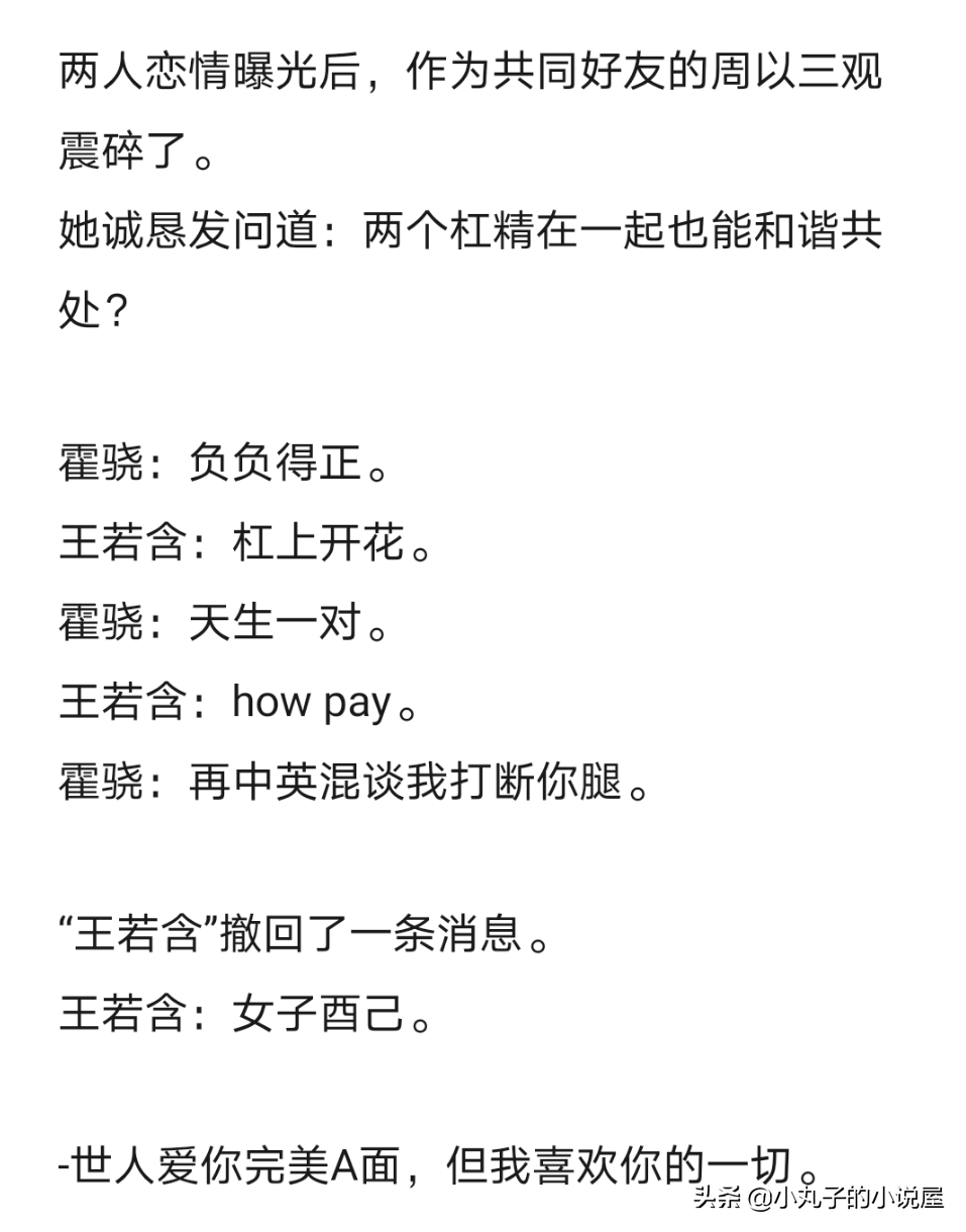 另外,周以得知閨蜜和男主在一起後的情景,笑死我了。男主男二互動也蠻搞笑,男主那會兒智齒發炎,正好是男二看,男主說把智齒盡快拔掉,怕腫、很醜,男二說「三十歲的人了還有這麼重的偶像包袱?」,兩人還互誇彼此帥,看得我笑噴了。