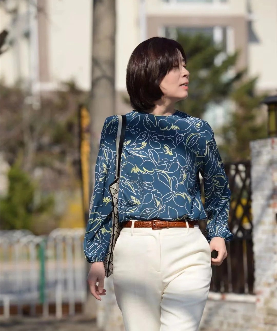 簡潔的配色可以給你的造型帶來大方又簡約的效果,以白色、米白色這類溫柔的色系為主,那麼中年女性的整套穿搭就毫無攻擊力可言,人人都能夠駕馭,而且把它們穿得好看,展現出溫婉的一面。