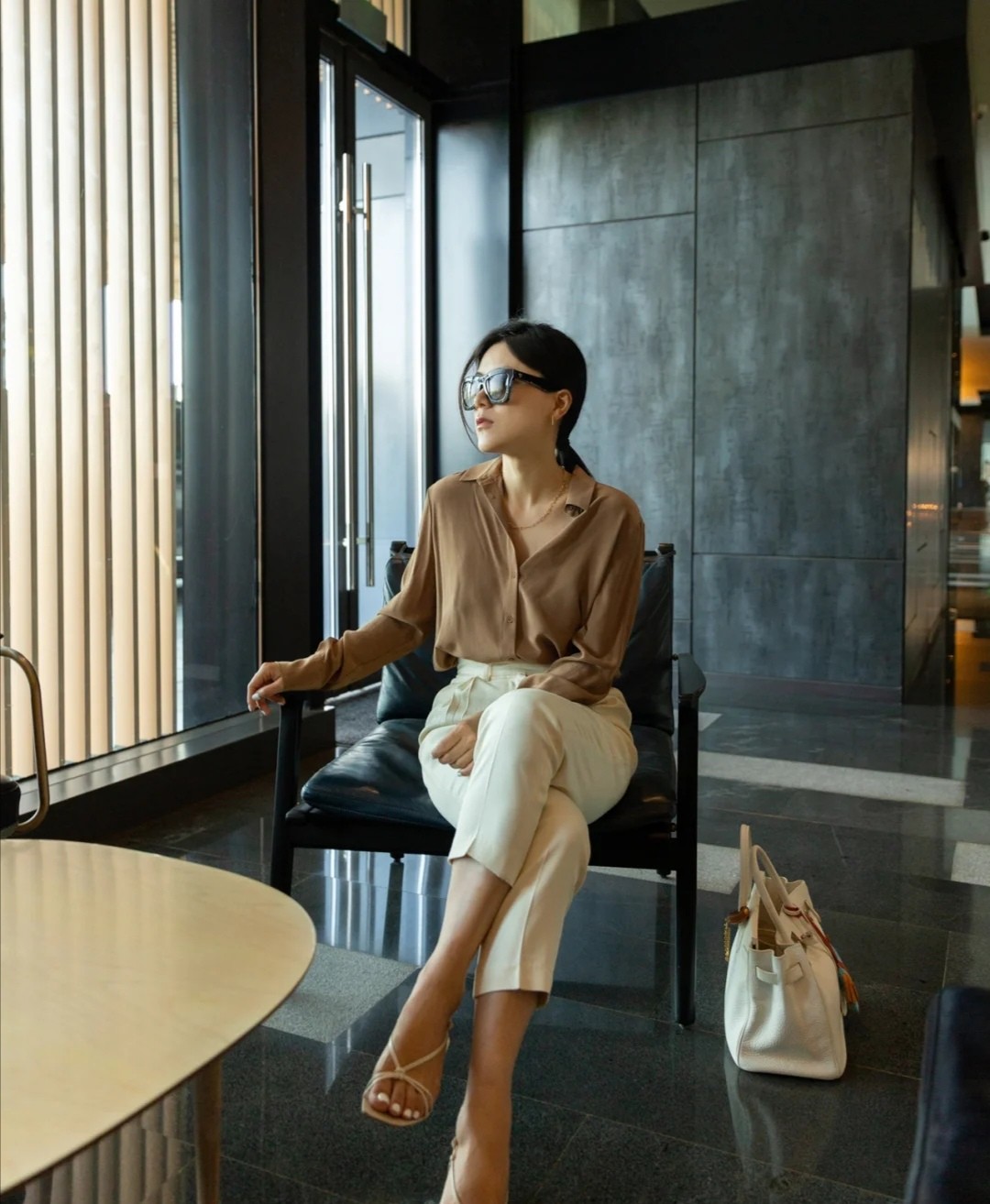 一件卡其色的襯衣,可以保持經久不衰的特征和好搭配的特點,配合的九分褲,可以使造型更具利落感,十分簡潔得體。