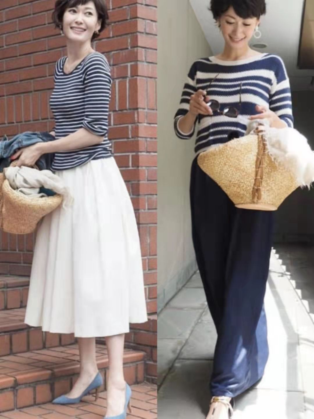 還有一類基礎款單品很容易被大眾忽略,那就是條紋衫,無論是薄款條紋衫還是條紋針織衫,都可以為造型增添休閒調性,好駕馭還舒適,如黑白條紋衫。