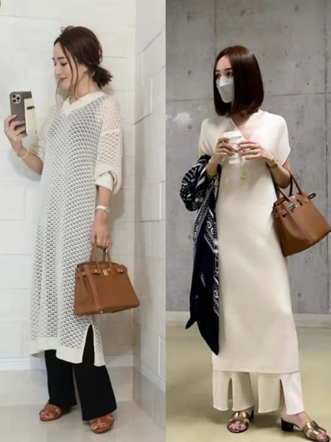 從很多中年博主穿搭中,我們也能看到,她們無論穿什麼,都會注重上衣、下裝的版型選擇,當上衣比較寬鬆時,會搭條略微修身的下裝,反過來也是如此。