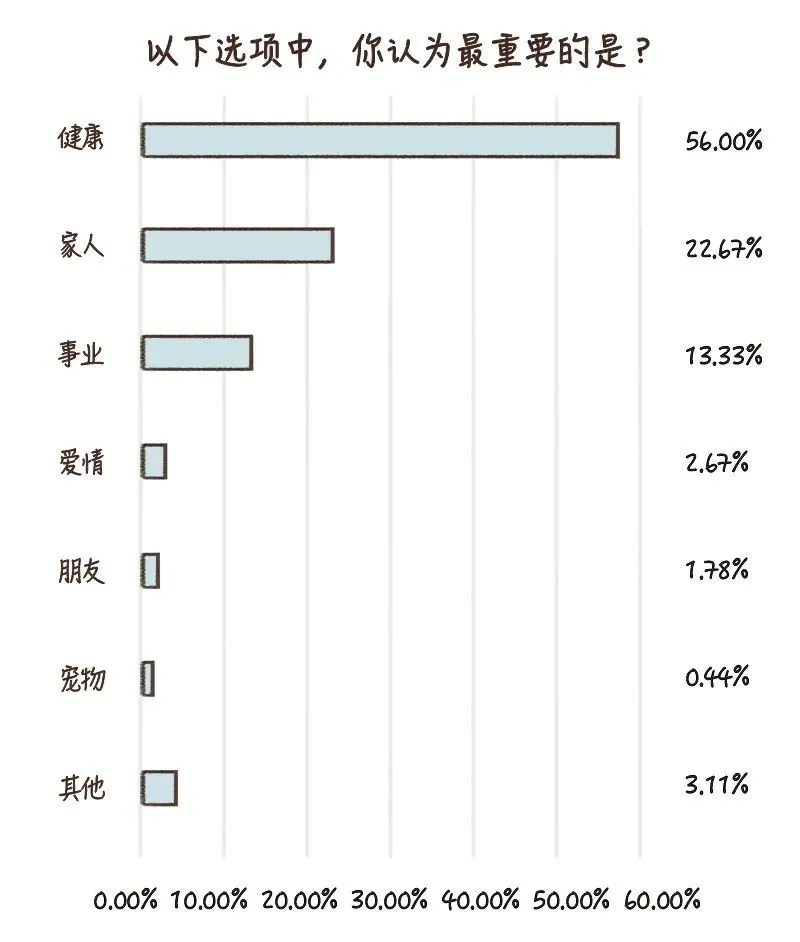 此外我們還發現,雖然很多人「想脫單」,但實際上可能缺乏動力,難以真正行動起來。在 「人生重要選項排序」上,只有2.67%的人將愛情至於首位。