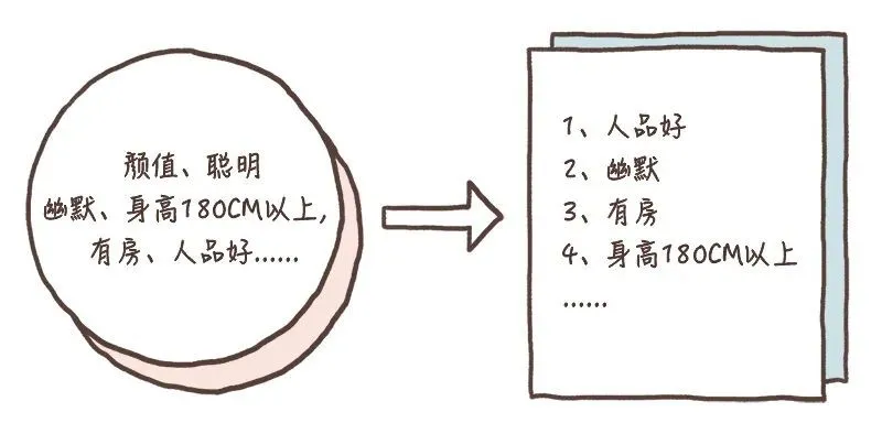但是!實際情況卻是,你很難找到一個完全match你所有要求的人。所以,對自己的擇偶要求進行優先級排序很有必要。