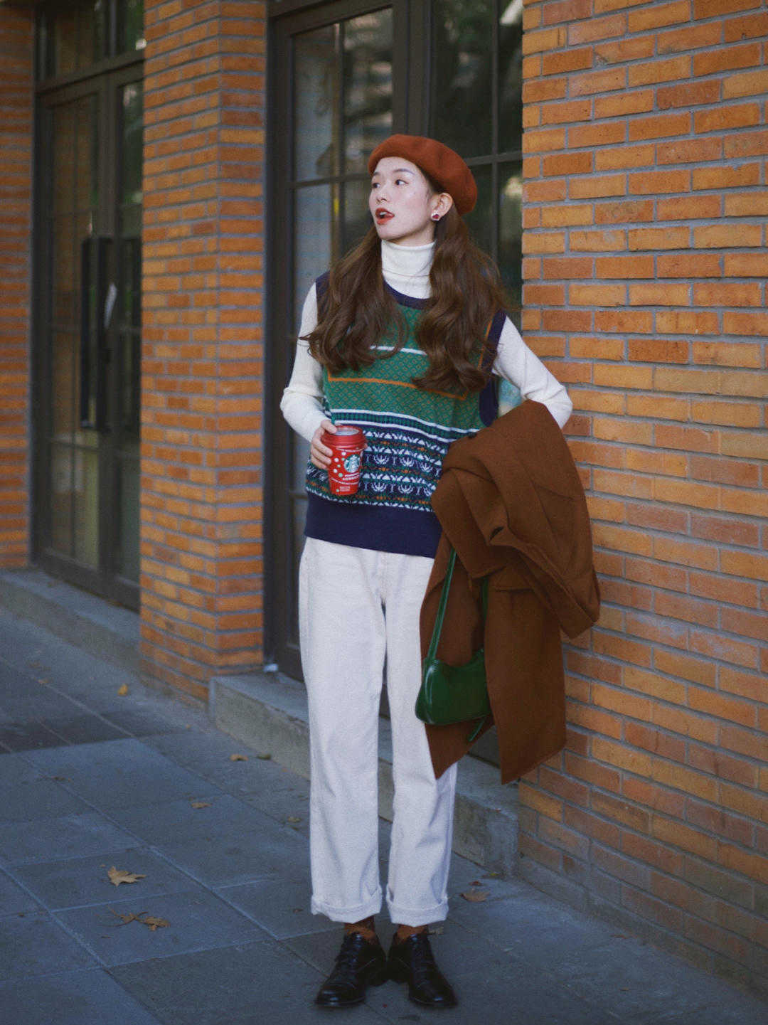 若你選擇的針織衫本身款式就很花哨,那麼選擇內搭的時候要以簡潔為主,所以可以選擇純色系的小高領或者是純色t恤搭配在裡面,這樣會覺得比較輕便哦!下半身也可以搭配和內搭同色系的褲裝,形成一定的延伸,使得你的身材變得更高挑哦。