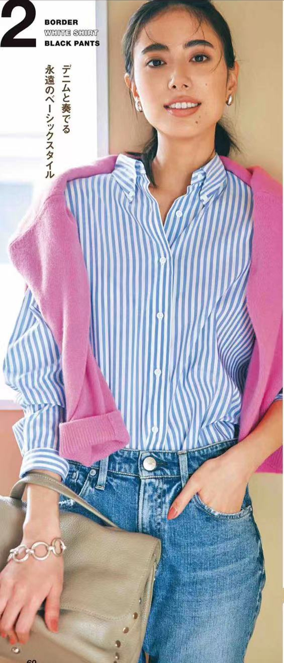 還有一種穿法,應該屬於休閒愜意的穿搭法,就是各種上衣直接和牛仔褲搭配,