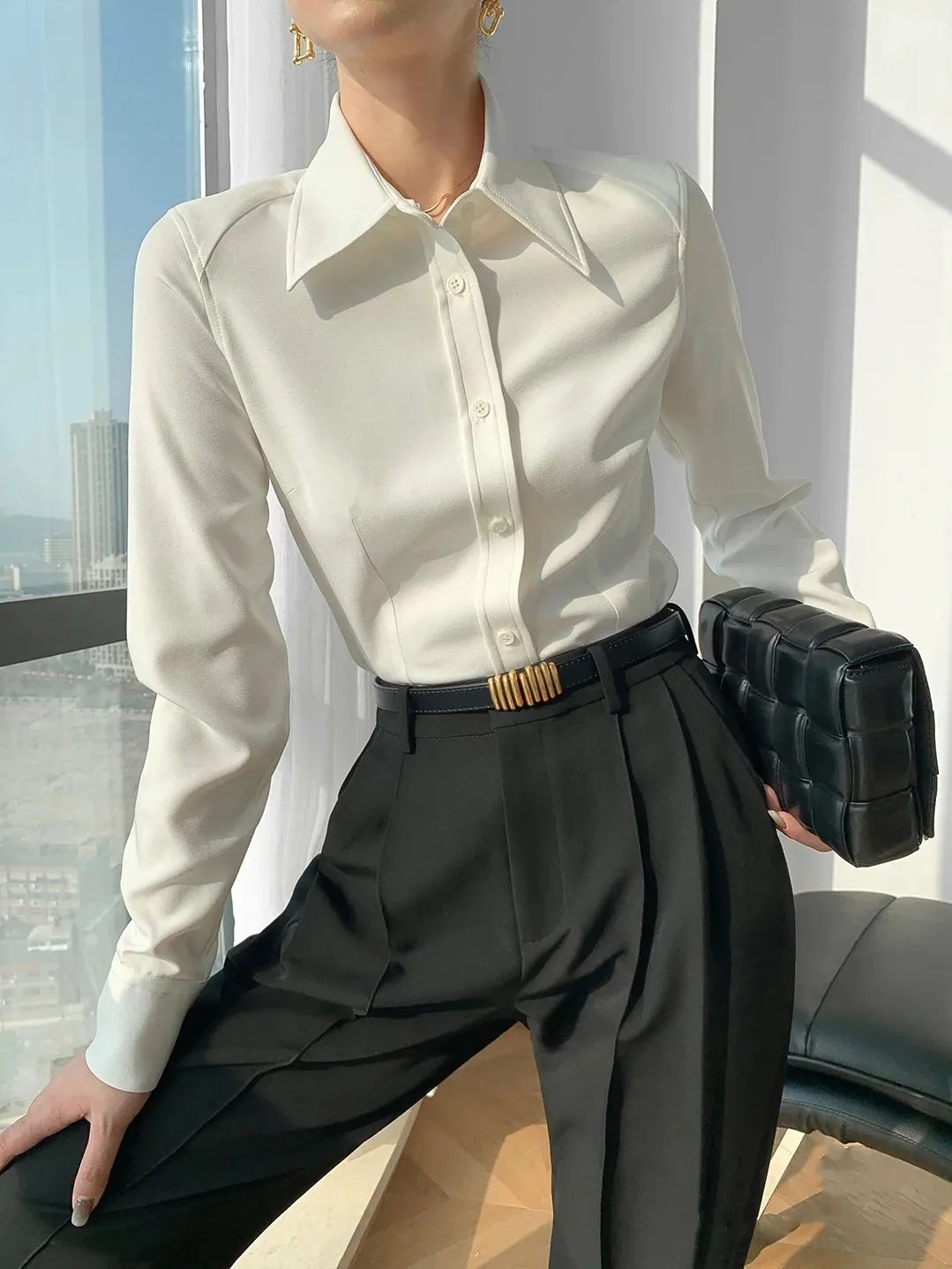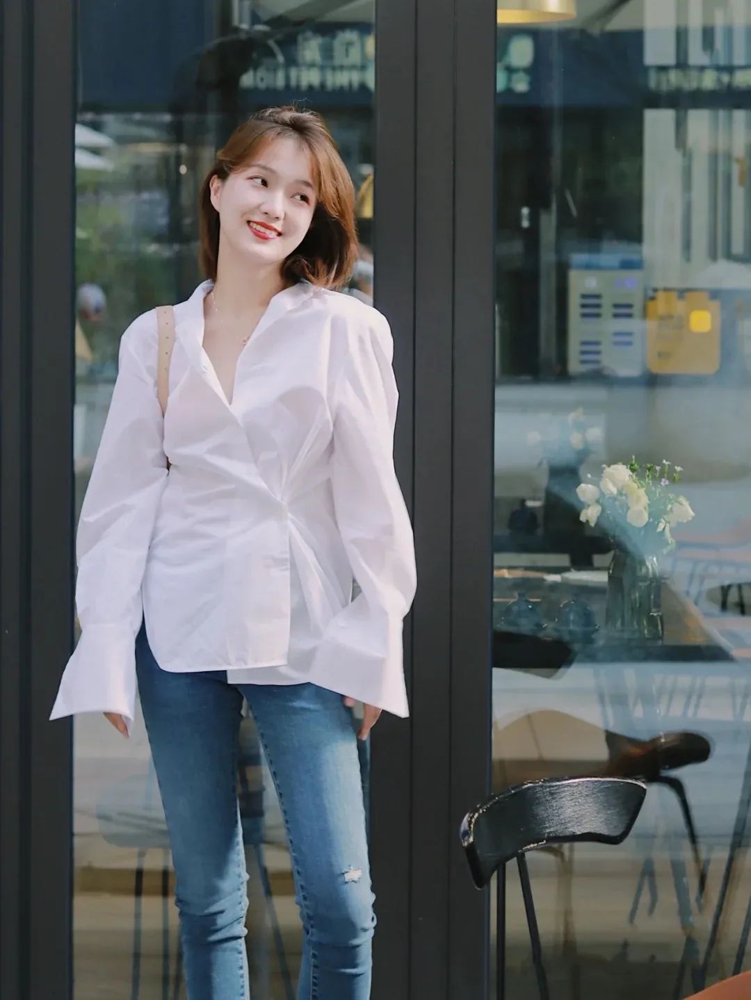 修身款的襯衫給人的感覺都很幹練很OL,職場穿搭必備。
