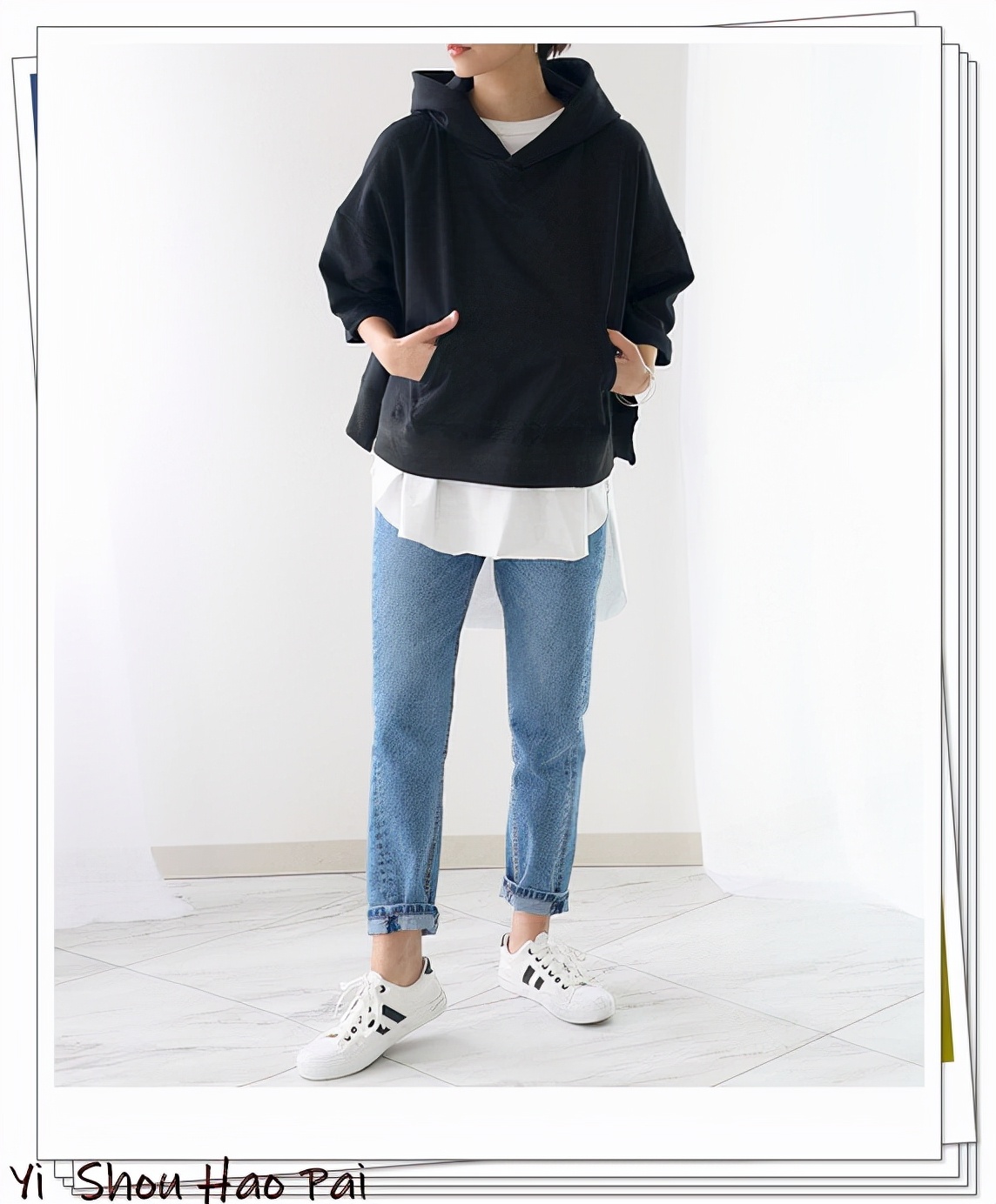 黑色寬鬆衛衣搭配