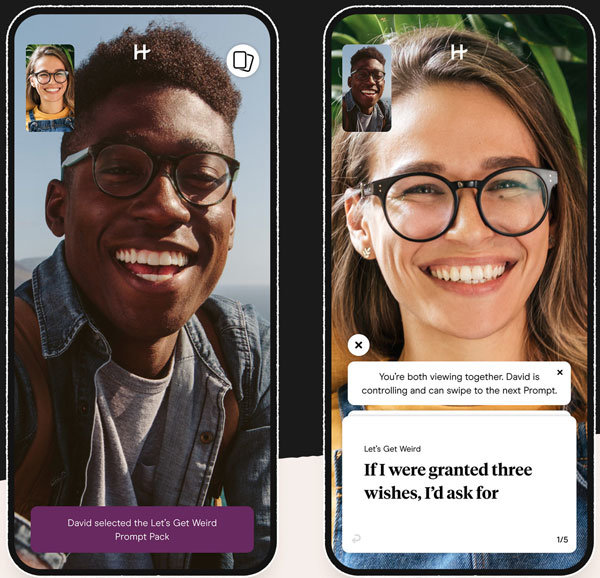 Hinge 跟 Tinder 同屬一家母公司,社區氣氛更偏向尋找認真長期關係。4 月,Hinge 推出「視訊提示(Video Prompts)」功能,直接將一堆破冰用的話題打在雙方的螢幕上,手把手教你視訊聊天。