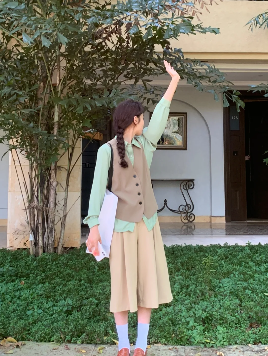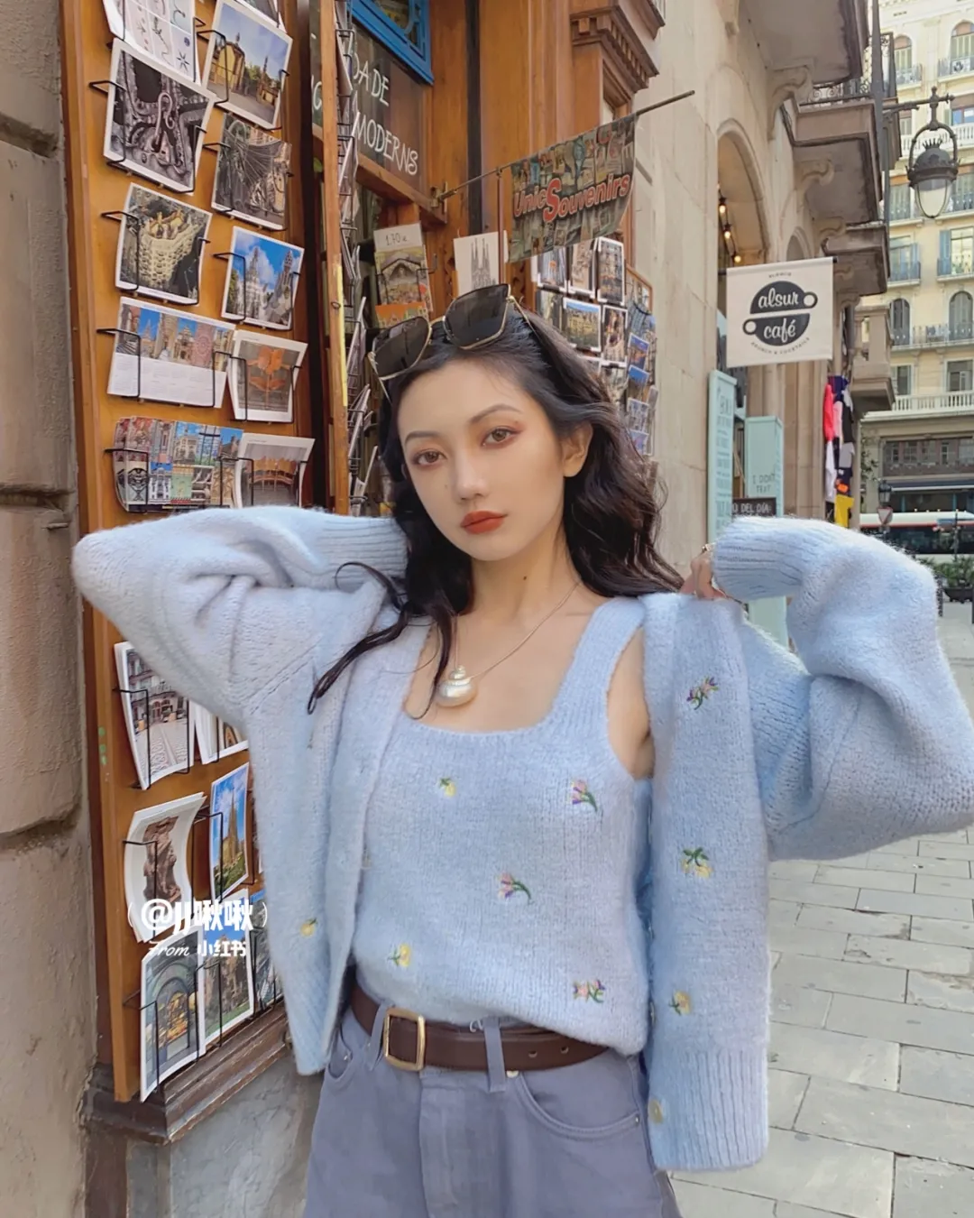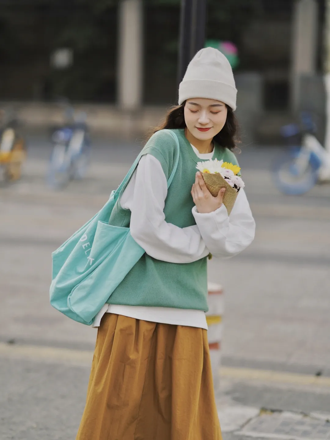 咱們可以自己搭配短彩色馬甲突出腰線,