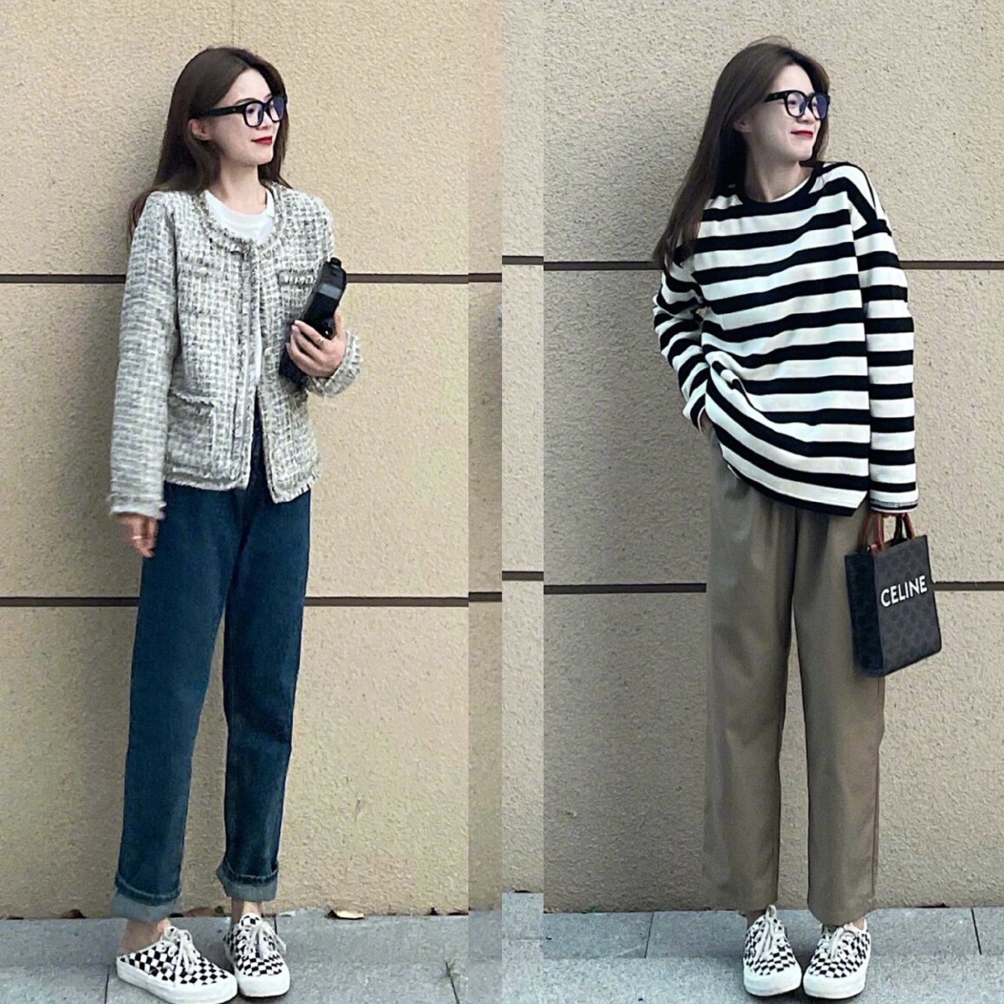 小香風外套+牛仔直筒褲。這一套的高級洋氣的點在於風格的混搭上。小香風外套不再局限於很正式隆重的場合了,日常穿搭我們可以搭配 一條修身的牛仔褲,讓小香風外套混入一點休閒感,大方又自然。