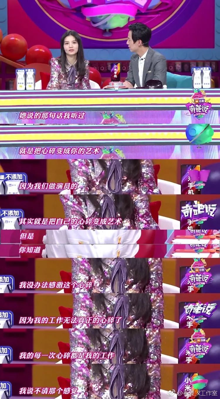 對於要做一個特別的人,她解釋到:「我有一天,在拍戲的時候,站在追光下,然後那個燈光就打到我,我一下整個人就變得特別的澎湃,當時眼淚都要流出來了。我就是要這個世界上有一束光是為我叫車,我就是要有一個舞臺是為我亮的,我要這個世界上有人是為我而來的。」