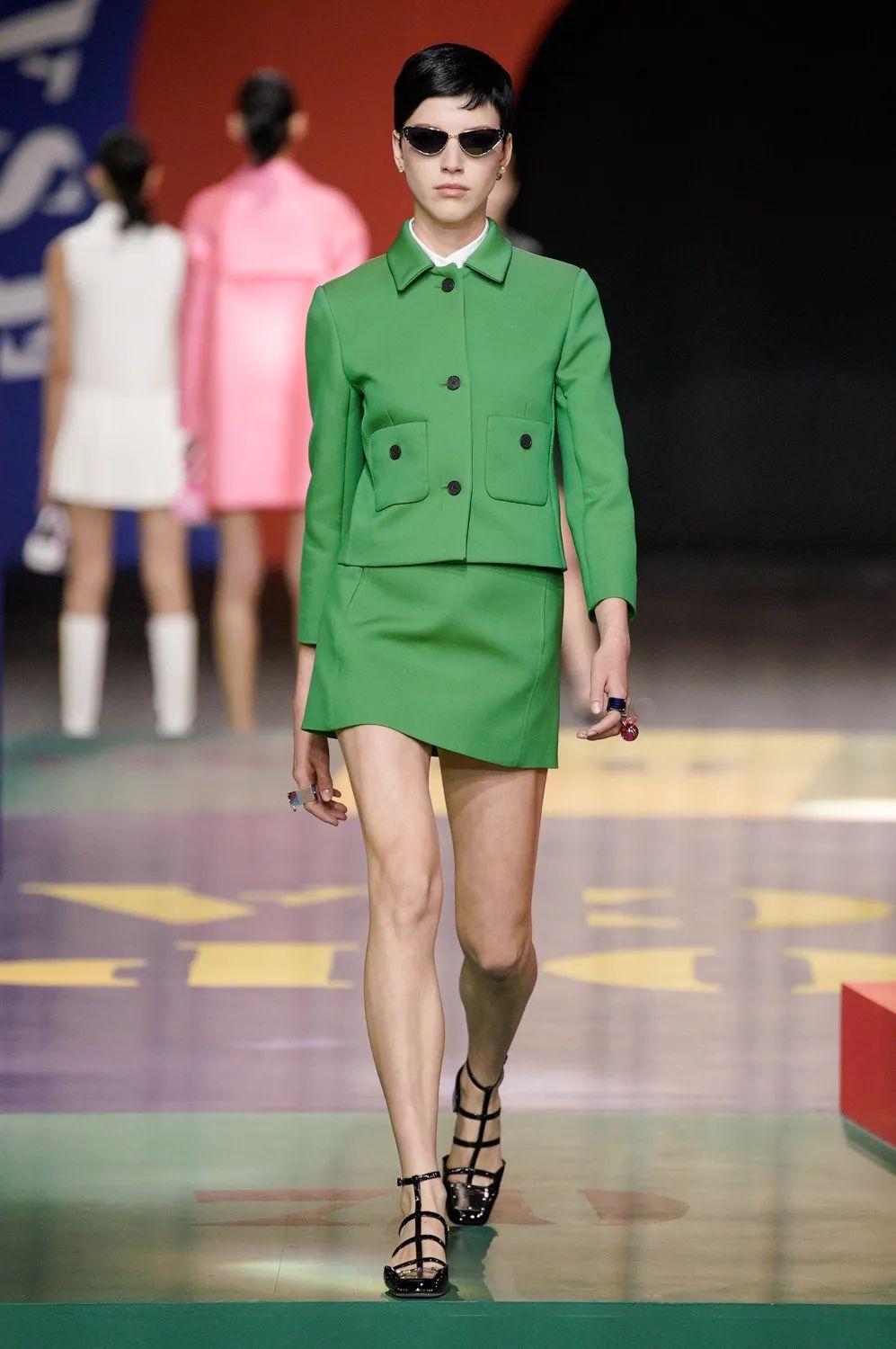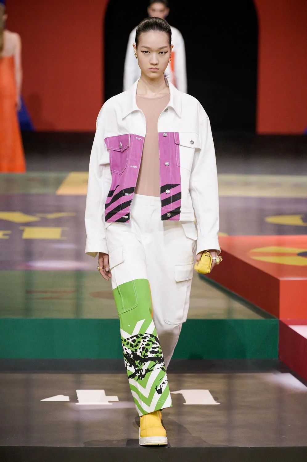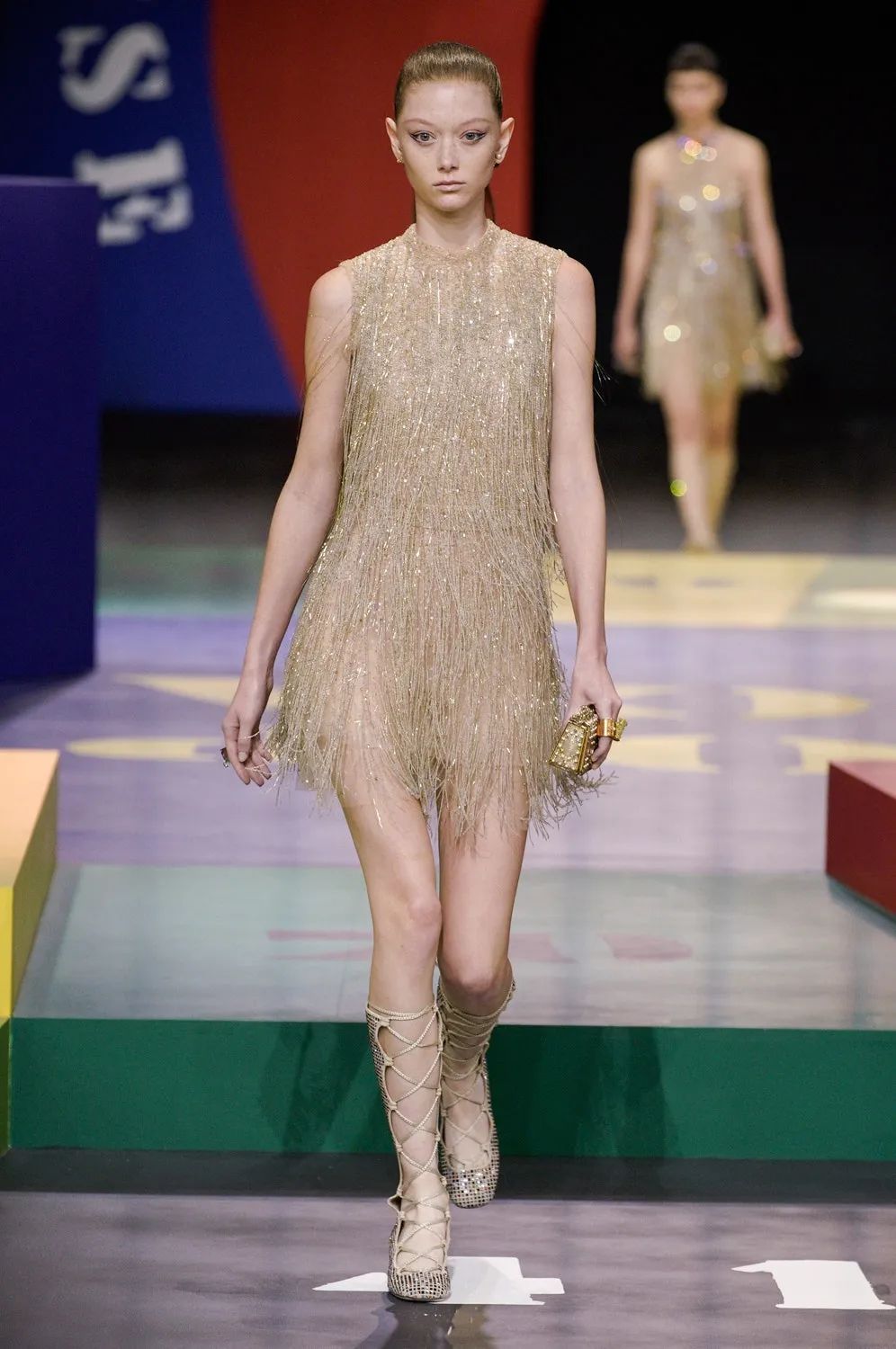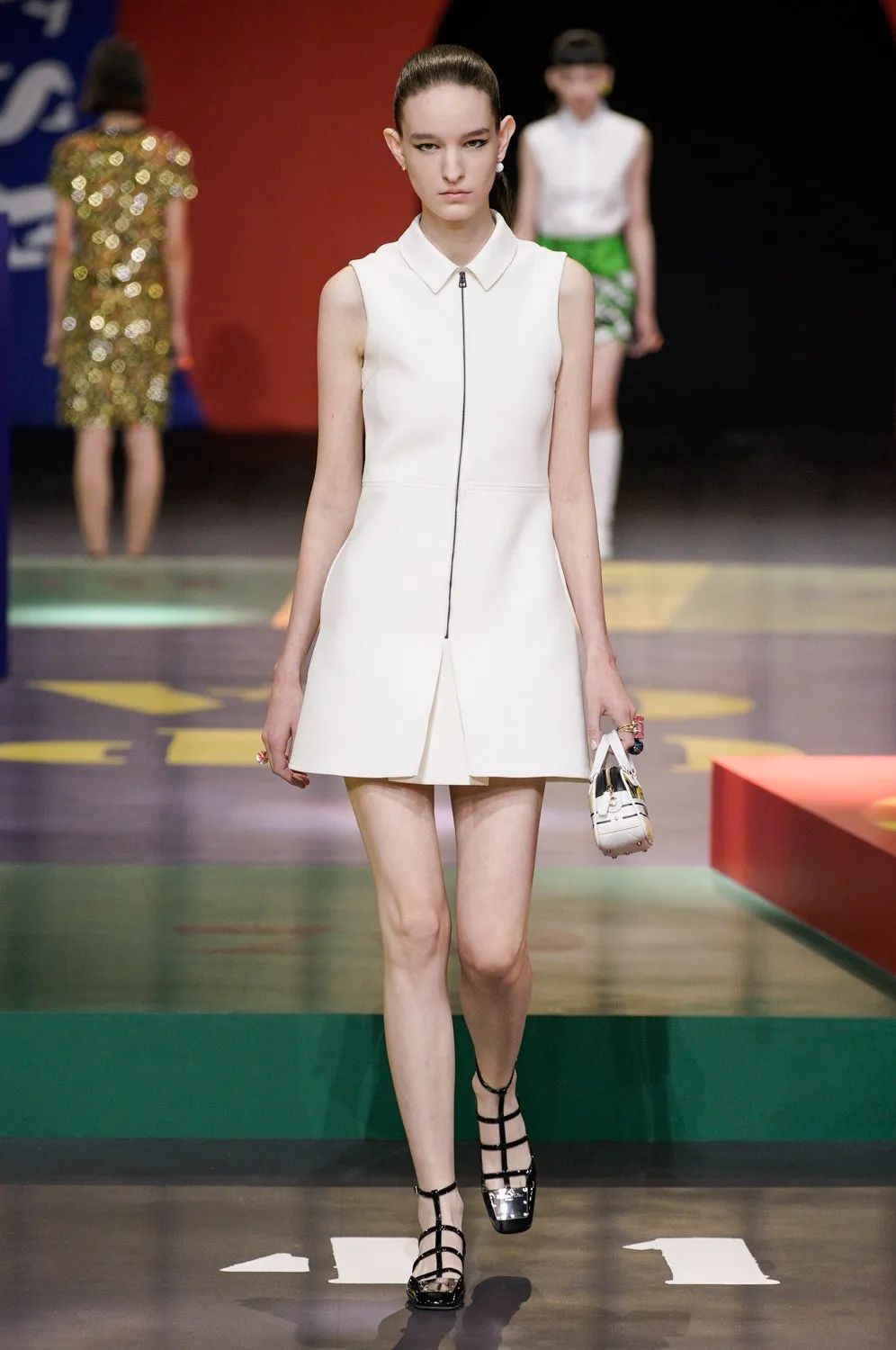 北京時間9月28日21:00,黑暗的秀場被鎂光燈從四面八方打亮,85名模特在由各種糖果色塊拼接的圓上早已定位,音樂響起,讓我們開啟這場輪盤遊戲。