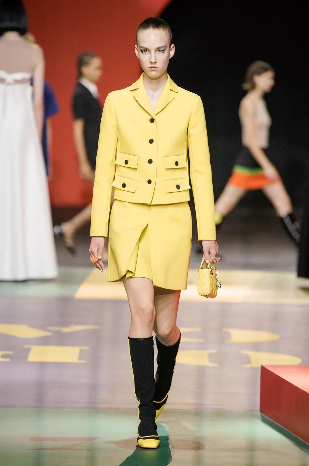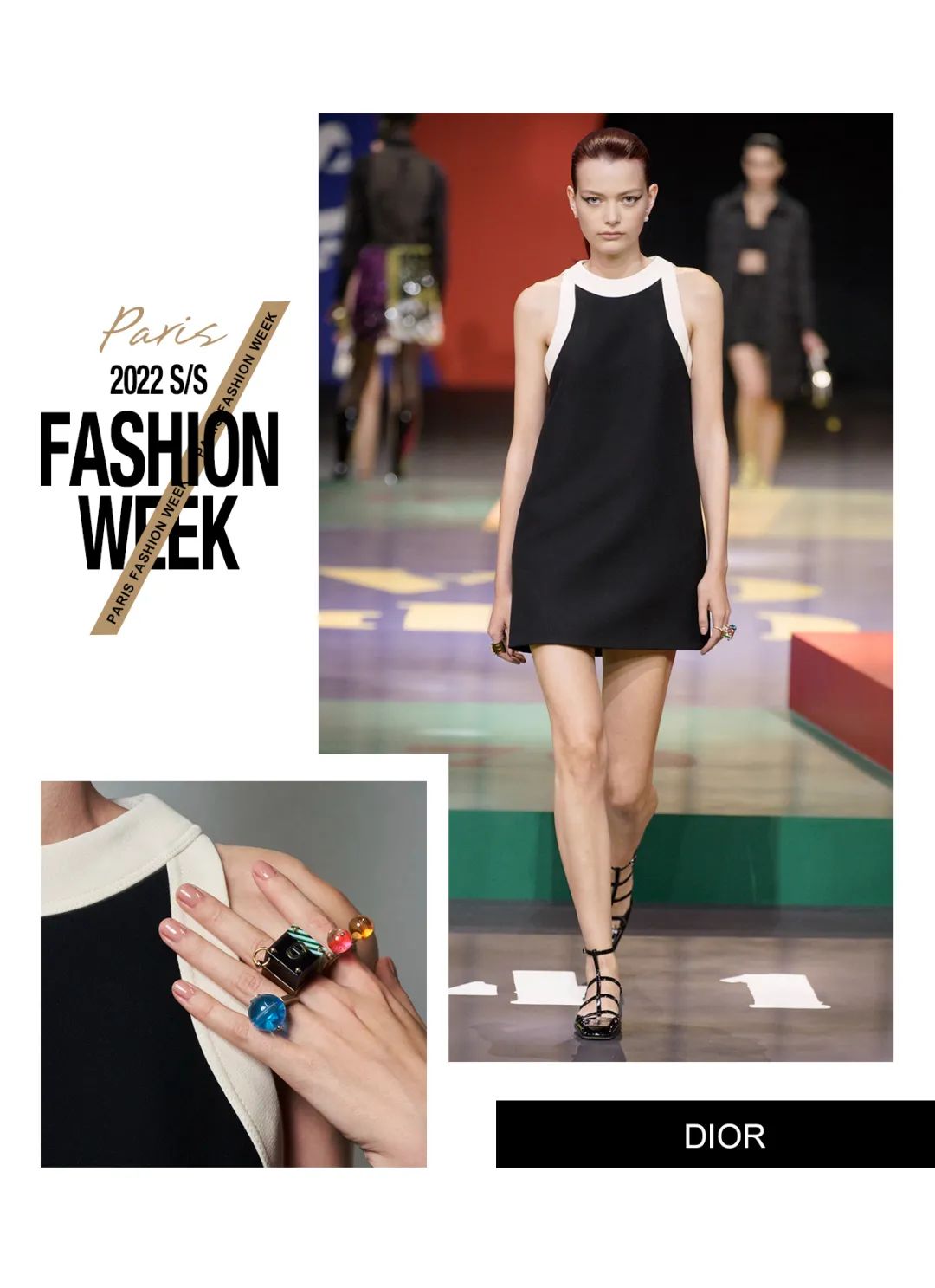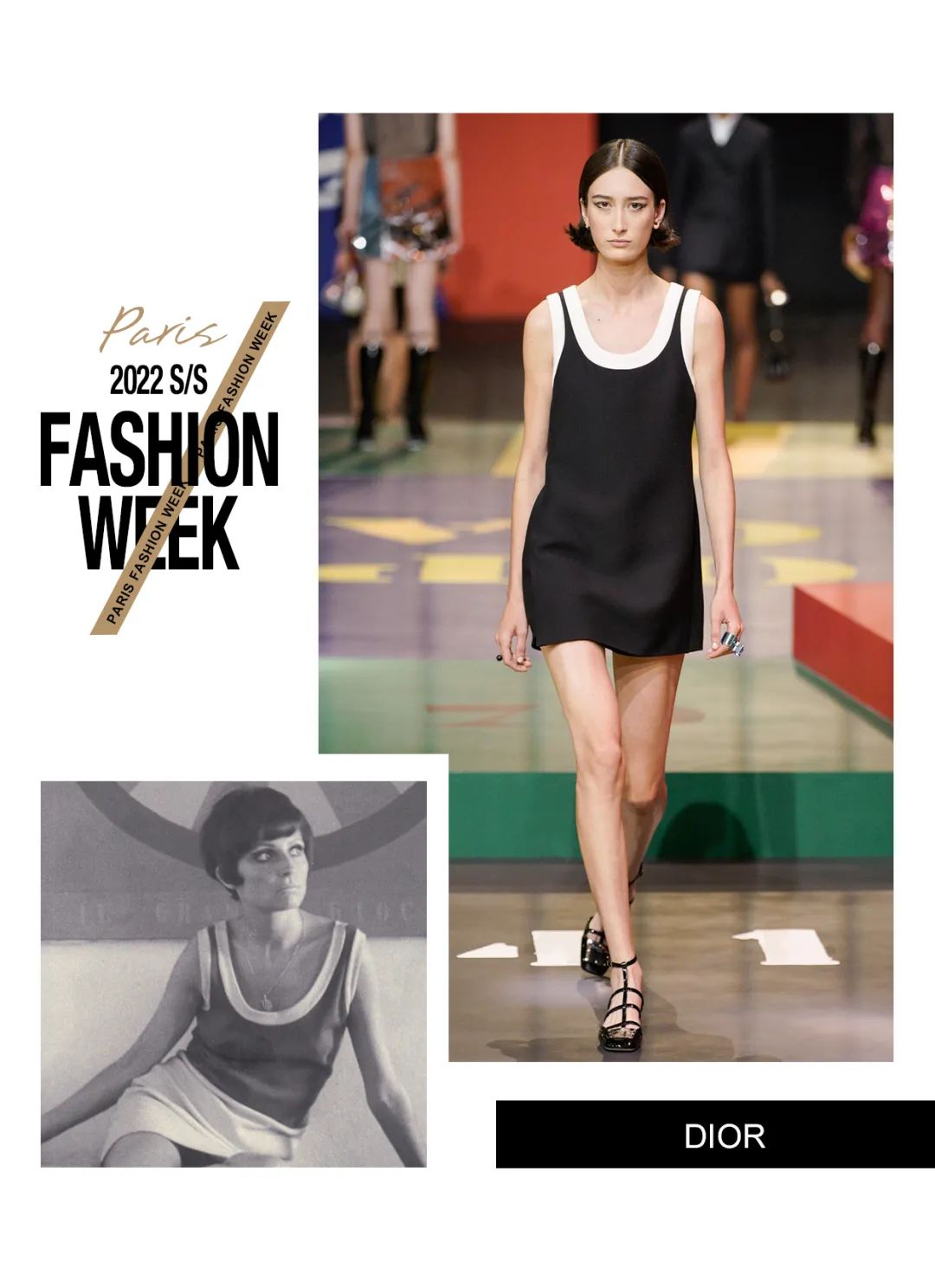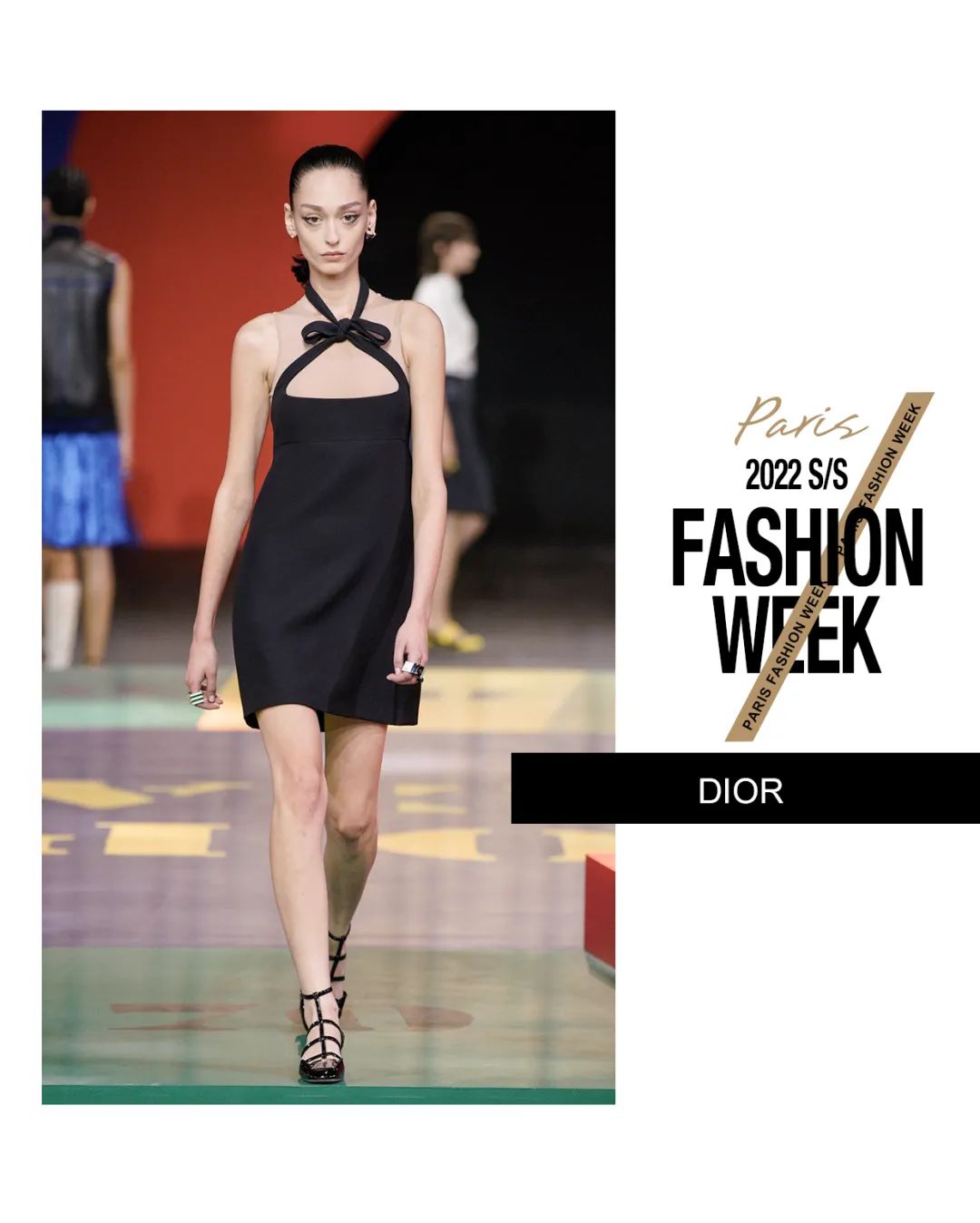 本次Maria Grazia Chiuri請來了藝術家Anna Paparatti一起探索屬於上世紀60年代的輝煌時刻。Maria從Christian Dior的檔案庫中發現60年代到80年代末期的主設計師Marc Bohan所設計的Slim Look,以其考究板型延續品牌基因,並與當時盛極一時的羅馬夜店Piper Club風格結合,喚醒了Dior New Look在21世紀的全新演繹。