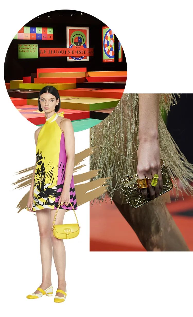 在地球另一端的法國巴黎,Dior女裝設計師Maria Grazia Chiuri就從藝術家Anna Paparatti的代表作——《無稽的遊戲》中獲得了秀場布景靈感,在巴黎上演了一場華麗而又怪誕的色彩遊戲。
