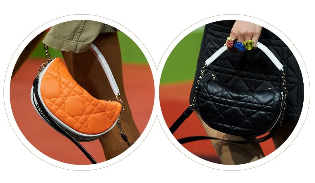 今年全新推出的保齡球包和半月包細節做工上也很考究,保齡球包硬挺的包身可以看出皮質的優良,就連包底都加上了Dior經典的衍縫菱格紋壓花圖案,而半月包則更加柔軟、有女生味,設計師還貼心地提供了手提和肩背兩種方式,讓包包在日常中擁有更多搭配空間。