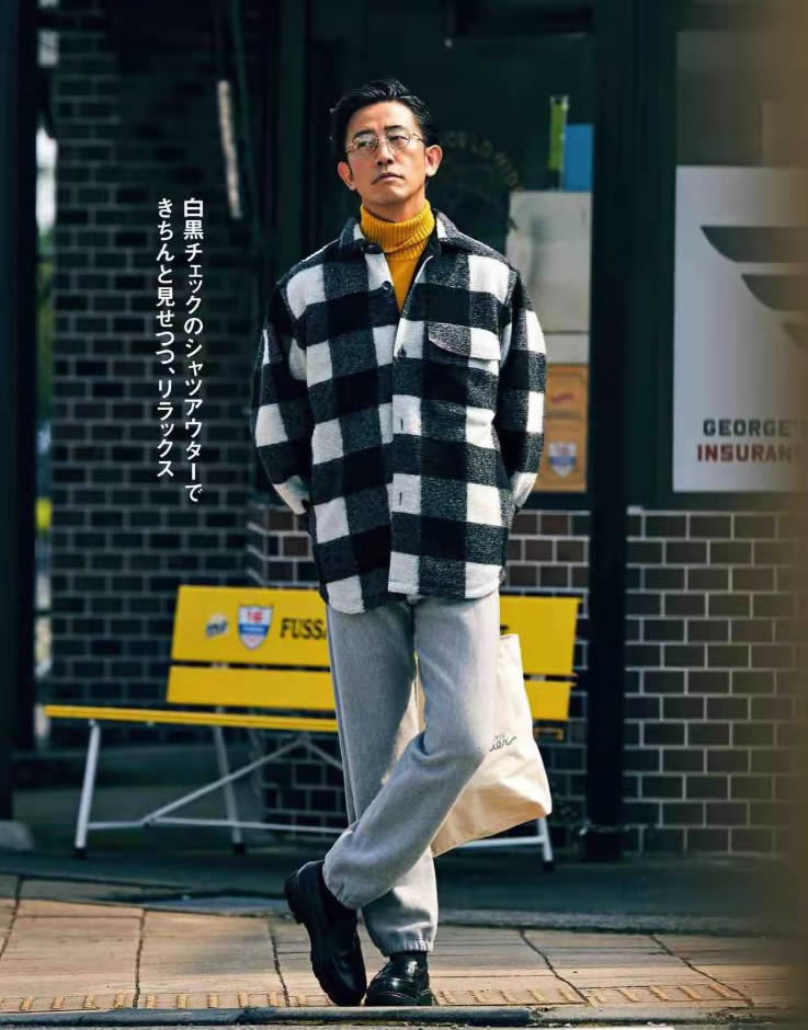 一身休閒裝,用最嚴肅的表情,寫著最百無聊賴的時髦。碩大的黑白格紋,極盡招搖之能事,無不引人側目。