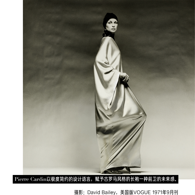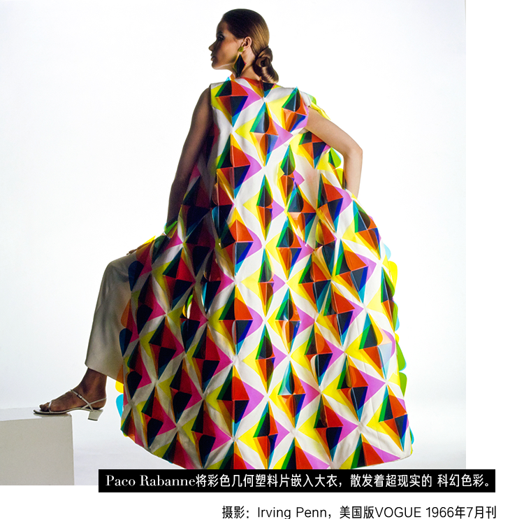 這天,距離1961年蘇聯太空人加加林完成世界上首次載人宇宙飛行已經過去了八年。在被這一頭一尾兩項巨大成績裹挾著的60年代,是一個人們對太空的好奇與熱情空前高漲的年代。永遠被新鮮事物所吸引的時尚界自然立即響應了這份來自外太空的號召,在穿針引線中,探索穿衣的全新方式。如果靈感來自過去,那麼人們心裡自然已經有了相當具象的預期;而當目標是未來,想像力和創造力則成為了唯一依據,所呈現的畫卷是蒼白抑或豐富,皆在設計師自己手中。所幸,以André Courrèges、Paco Rabanne和Pierre Cardin為代表的60年代設計師們,不僅讓這份畫卷精彩的超乎想像,更是成績了時裝史上激動人心的太空時代。