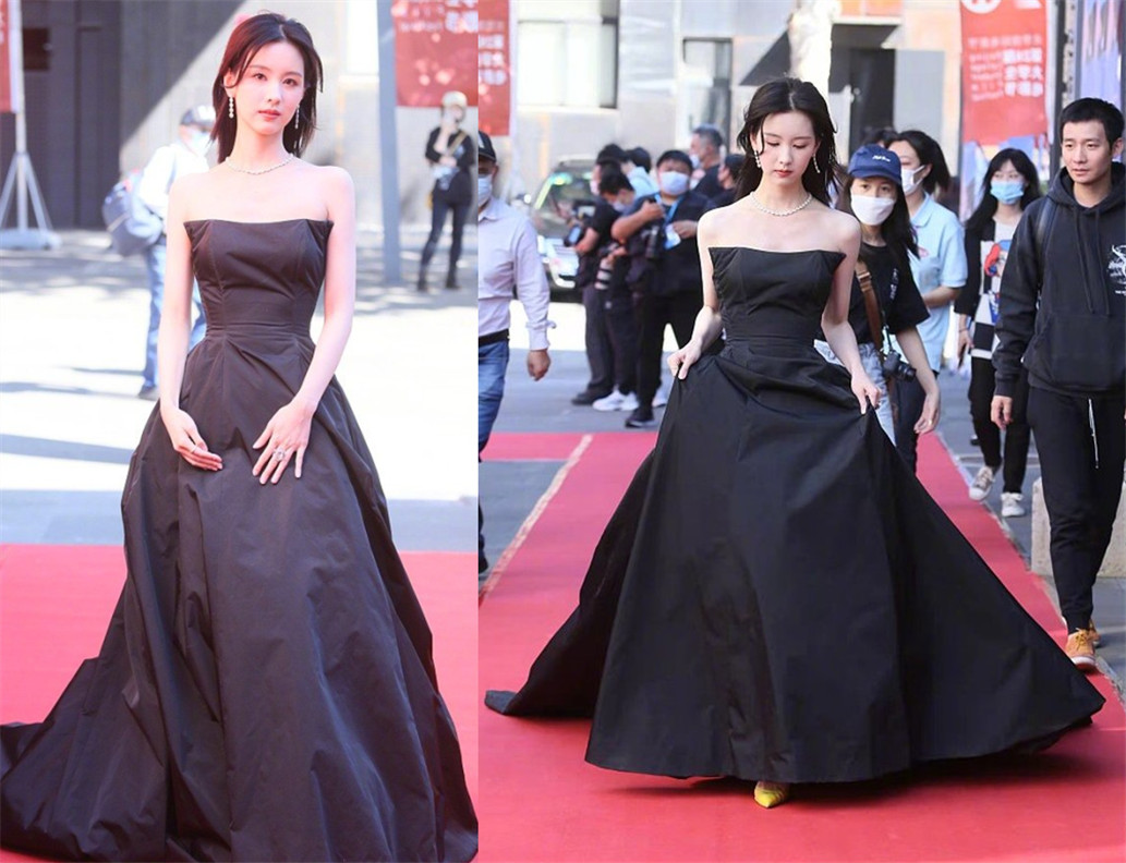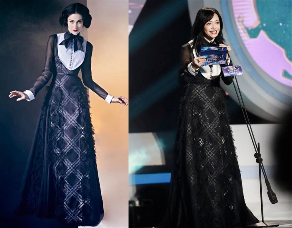 相比之下,陳都靈的表現就顯得很看重這場活動,總共貢獻了4套造型。紅毯上穿了一套黑色的poem燕尾服,雖然是公主裙,但因為是全黑的色彩,少了一些討好感,顯得更加沉穩冷冽,只是髮型稍顯的隨意了。