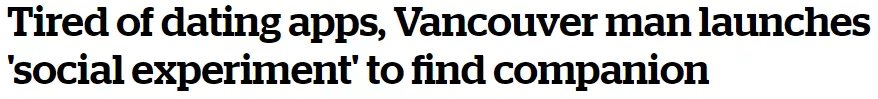 實際上,難題不光局限於華人圈。最近,一位35歲的溫哥華白人小哥,眼看奔四,髮際線越來越後退,卻連個能共度一生的真愛都沒找到,一時「急火攻心」,宣布懸賞7000加元,號召全溫哥華乃至全加拿大的網友幫他找老婆。