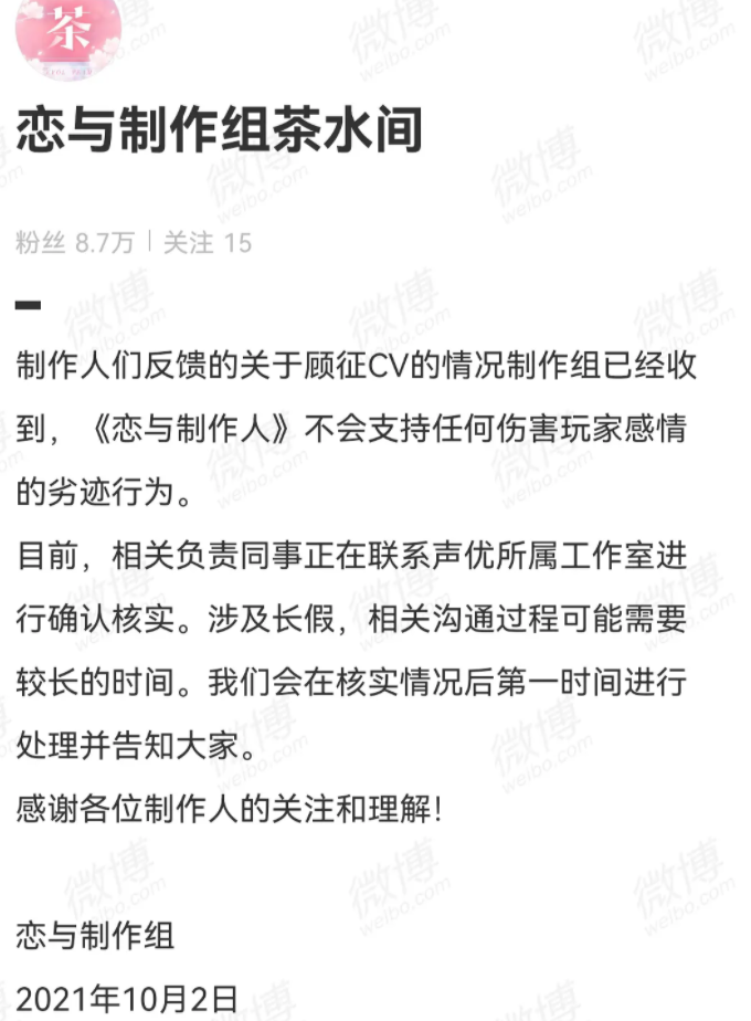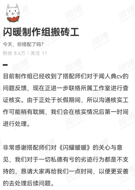 最近,配音演員李元韜被爆料主動約會粉絲,在見面後甚至就對該粉絲進行冷暴力,相關消息被傳出後,之前和李元韜合作的《戀與制作人》、《閃爍暖暖》、《光與夜之戀》、《絕對演繹》、《最後的廠牌》、《花亦山心之月》六款遊戲發出聲明,表示不支持任何私德有虧的劣跡行為,並將在李元韜本人出來回應解釋後決定是否繼續合作。