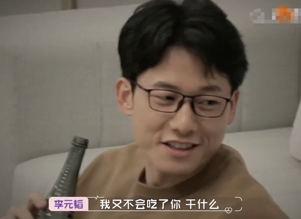 當進入屋內後,李元韜就主動靠近白冰,並邊喝水邊用眼神上下打量白冰,顯得非常不尊重人,白冰此時已經不是很舒服了,主動往邊上靠遠離李元韜,但是接下來的對話才是槽點滿滿,李元韜直言「我又不會吃了你」。