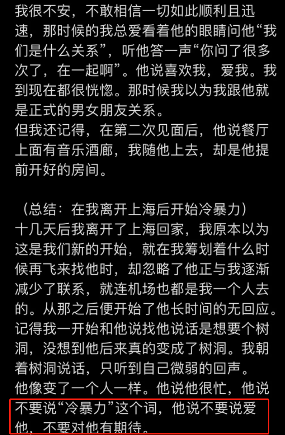 在見面後,兩人也迅速確認了男女朋友關係,在該女生放出之後的聊天記錄中,李元韜又表明不要愛他,也不要對他有所期待,也就是開始了該粉絲所說的冷暴力。