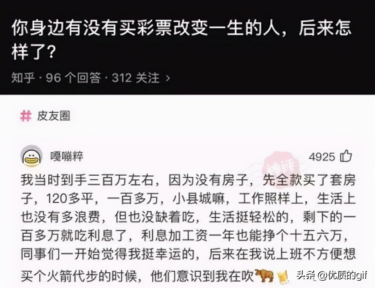 有,當時中了1000萬彩票,200萬買套房,100萬買輛車,700萬存銀行吃利息,日子過得特別瀟灑。